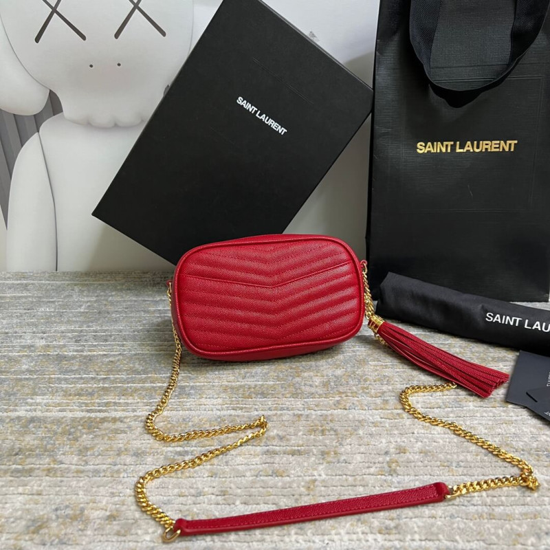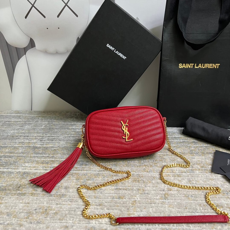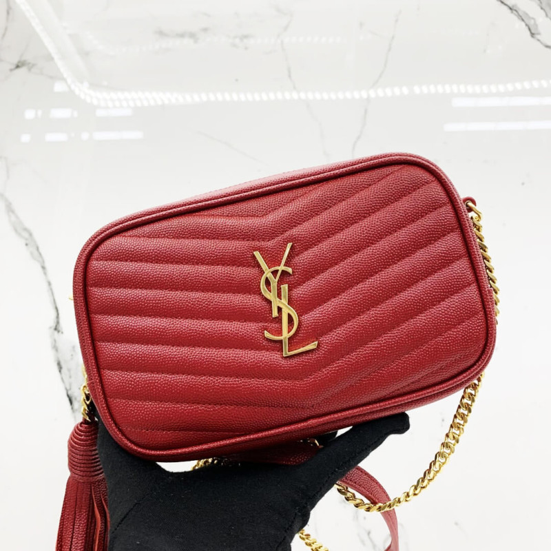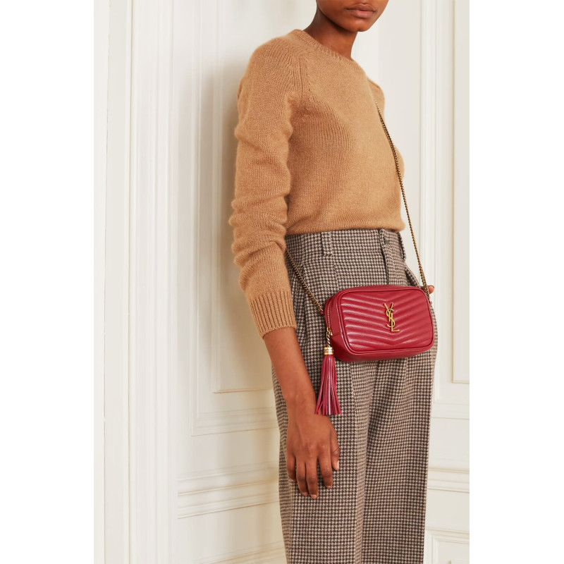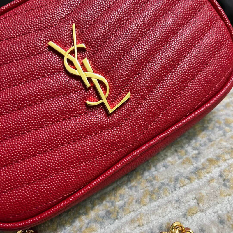 - Saint Laurent "Lou" camera bag in chevron-quilted calf leather with metal YSL monogram on front