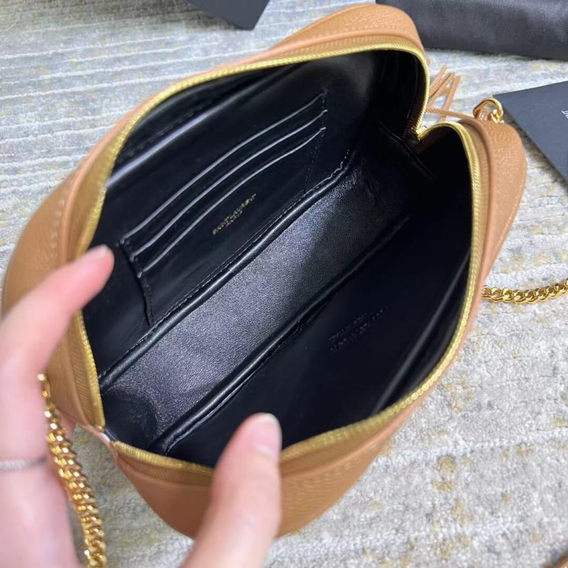 - Saint Laurent "Lou" camera bag in chevron-quilted calf leather with metal YSL monogram on front