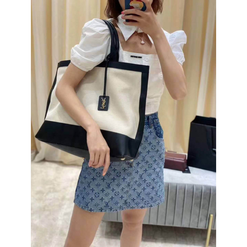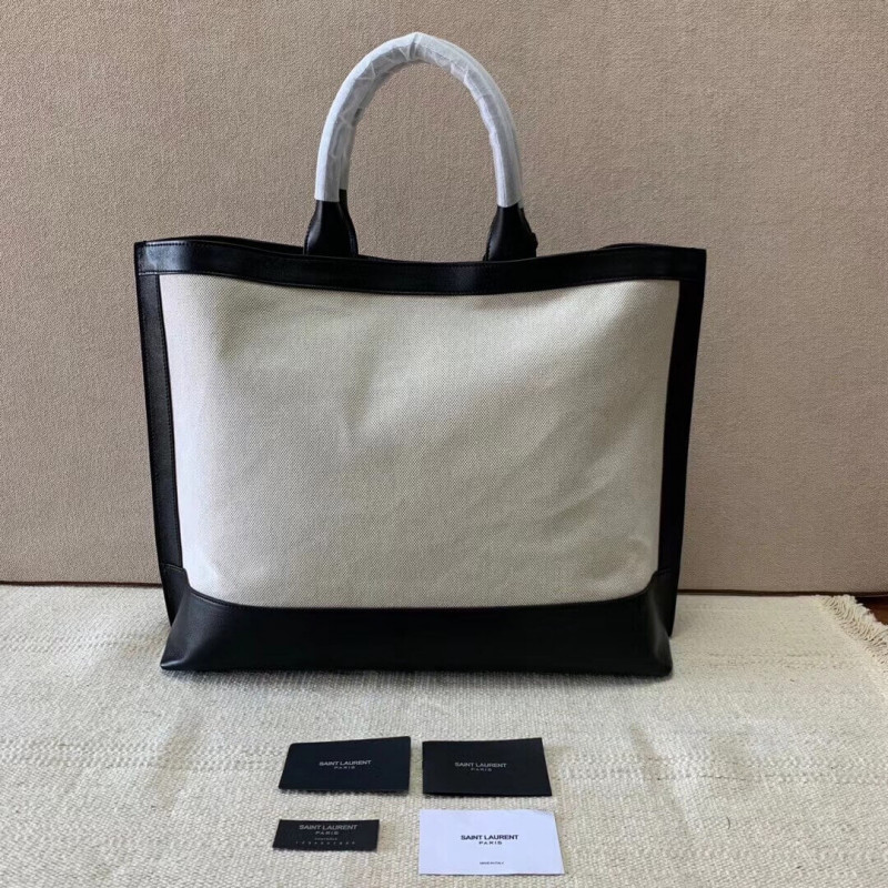 Saint Laurent Shopping Tag En Cuir Et Toile 619757