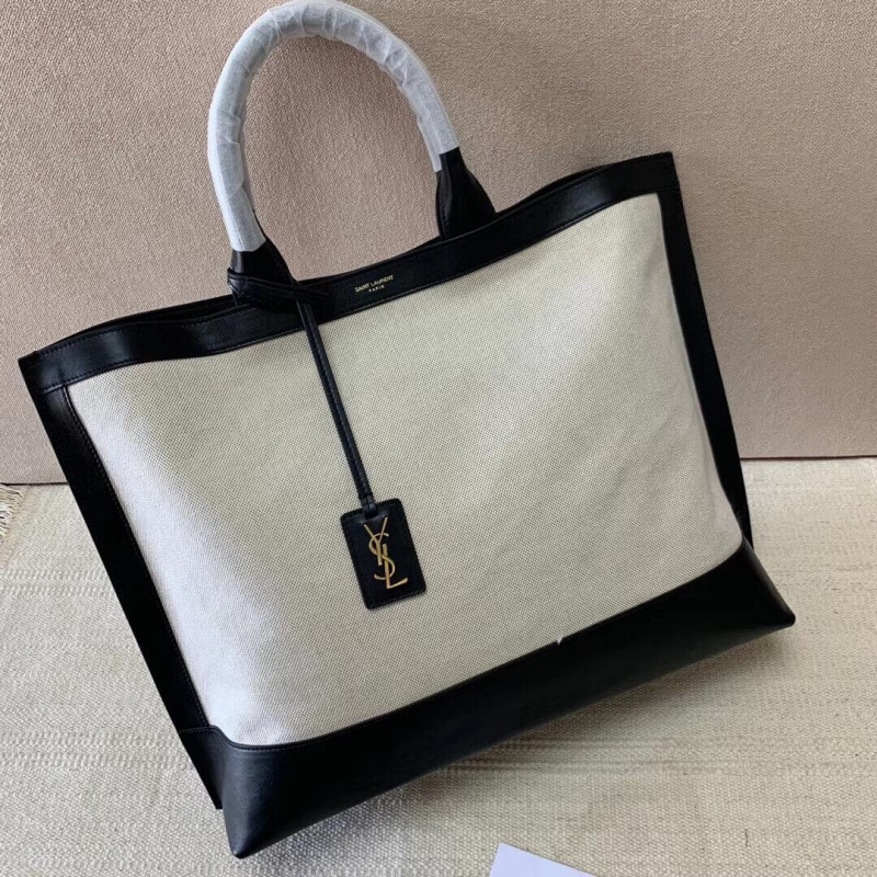 Sac cabas muni de poignées en cuir et d’une étiquette en cuir amovible ornée des initiales ysl en métal.