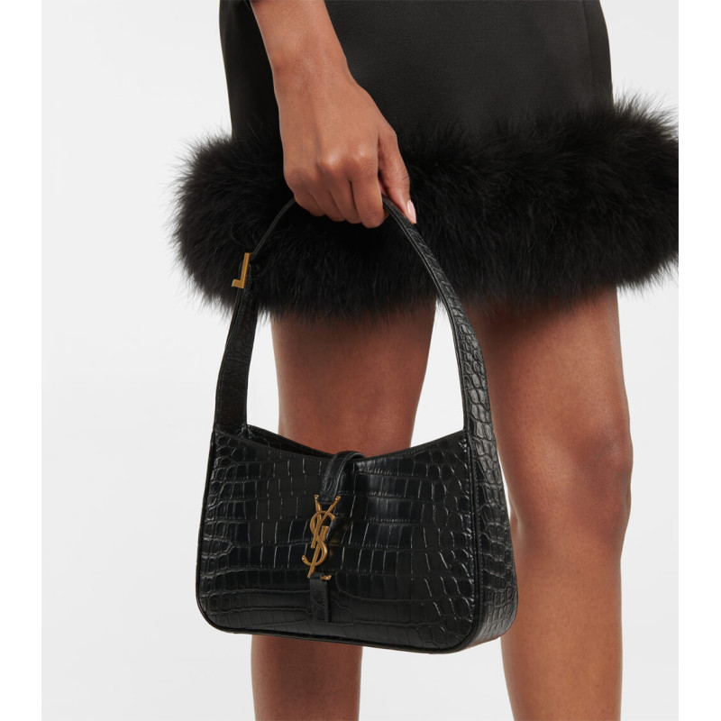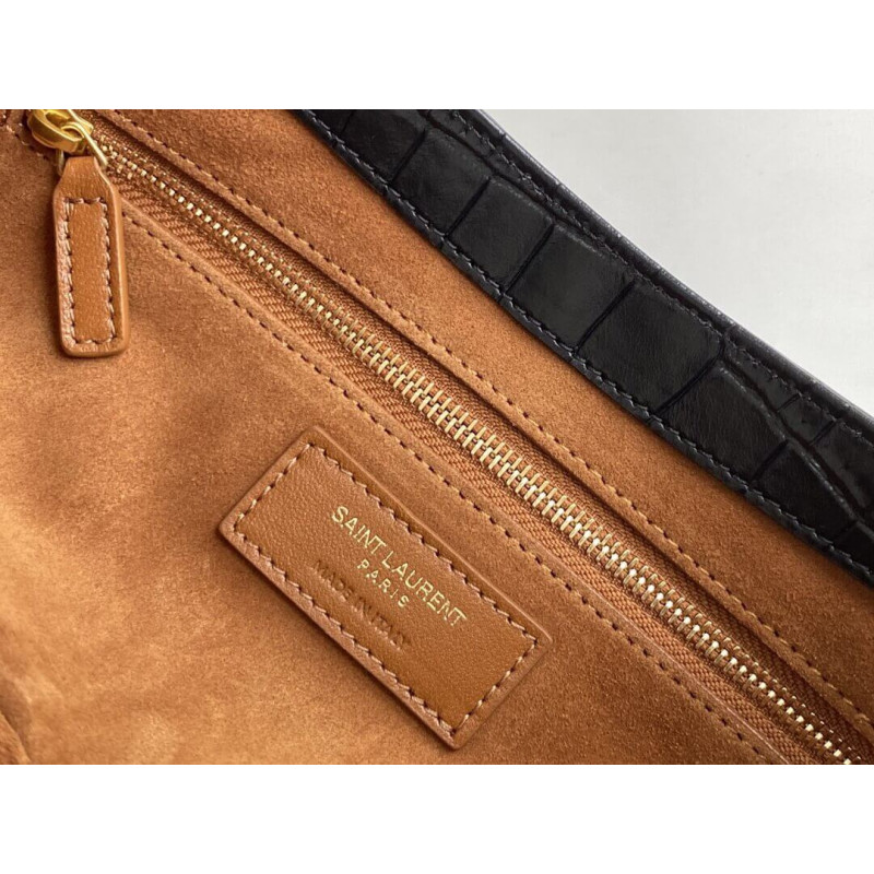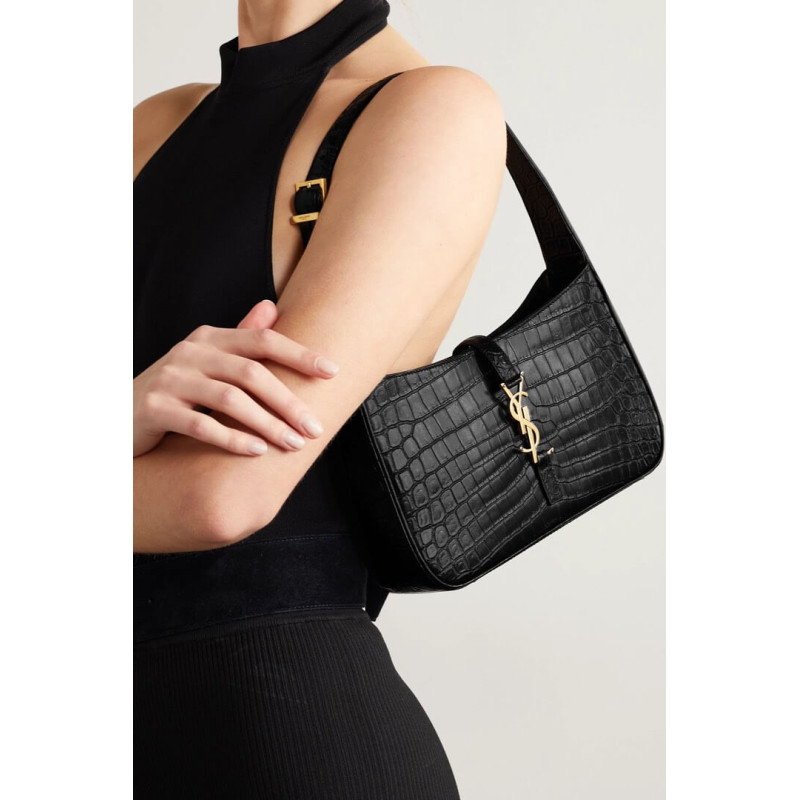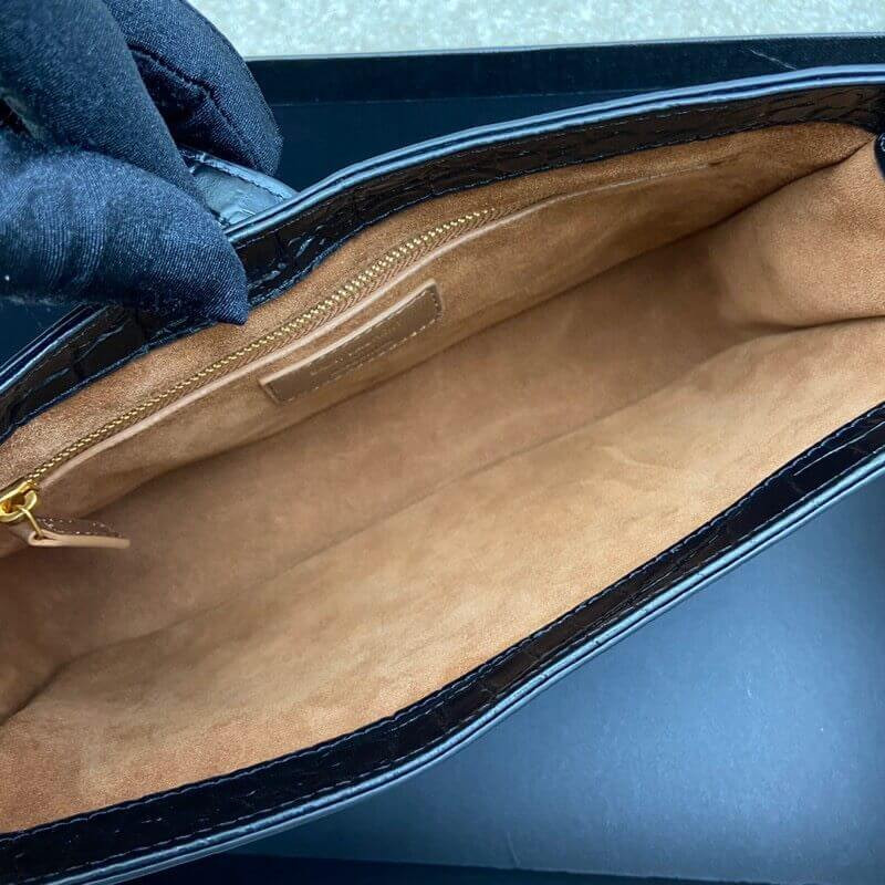 Saint Laurent 5A7 Crocodile-Effect Shoulder Bag Black 657228