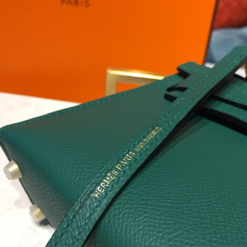 This limited edition Kelly has white contrast stitching, a front toggle closure, a single rolled handle and an optional shoulder strap.