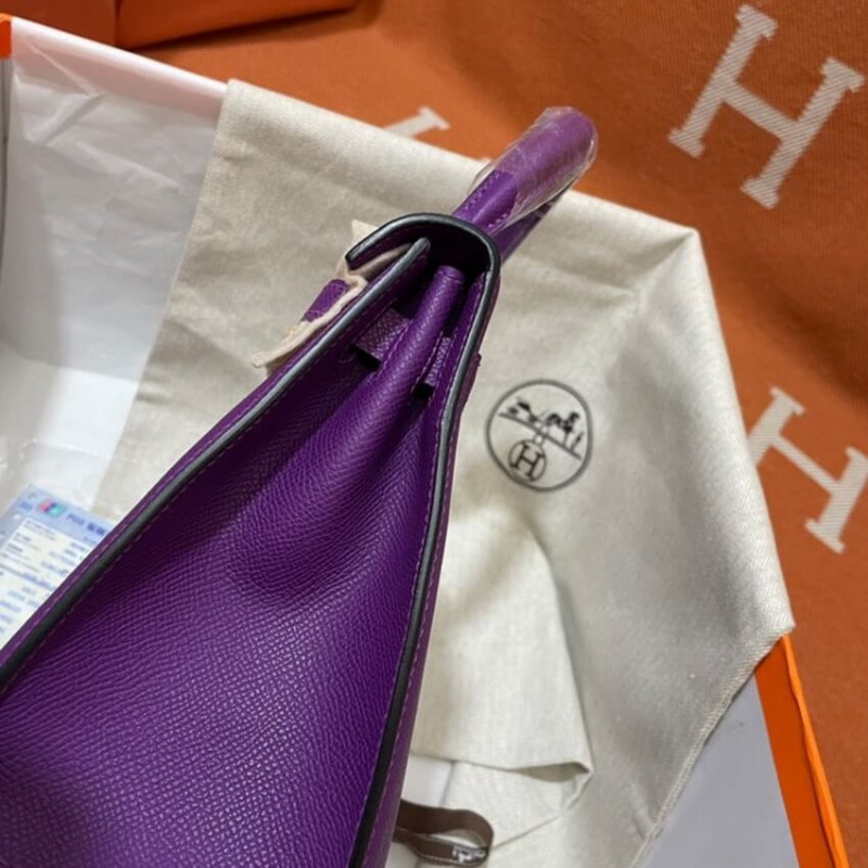 Epsom Leather,This Kelly, in the Retourne style, has tonal stitching, a front toggle closure, a clochette with lock and two keys, a single rolled handle, and a removable shoulder strap.