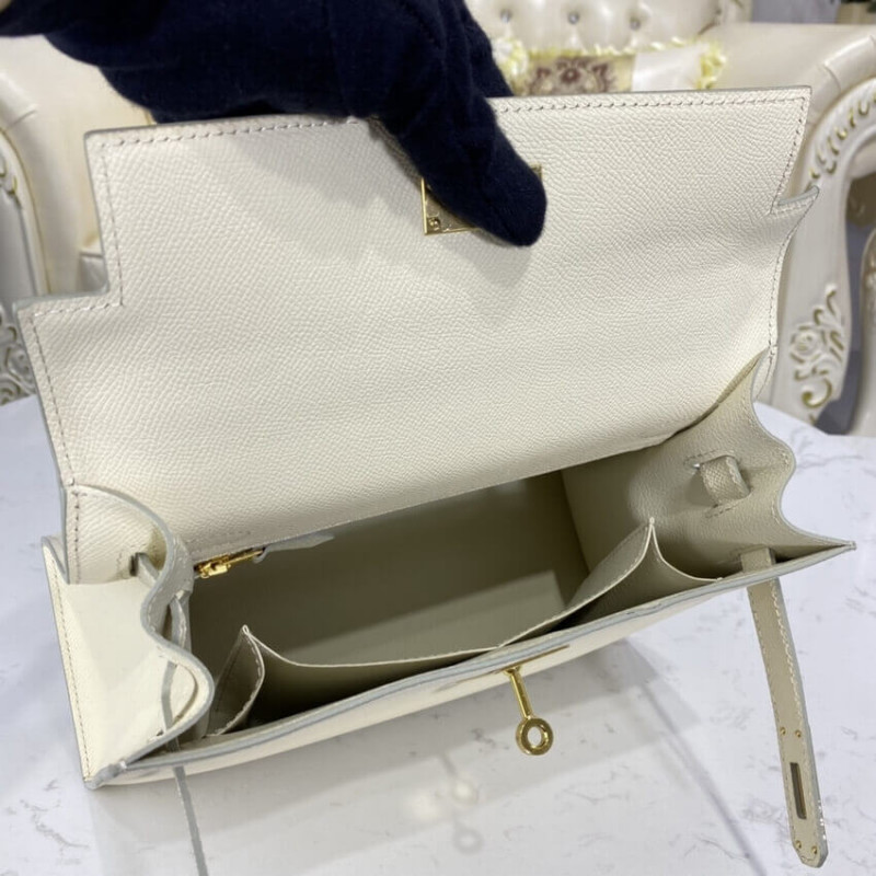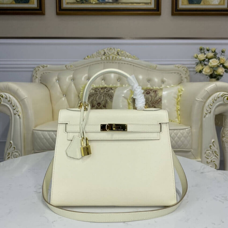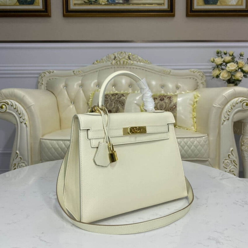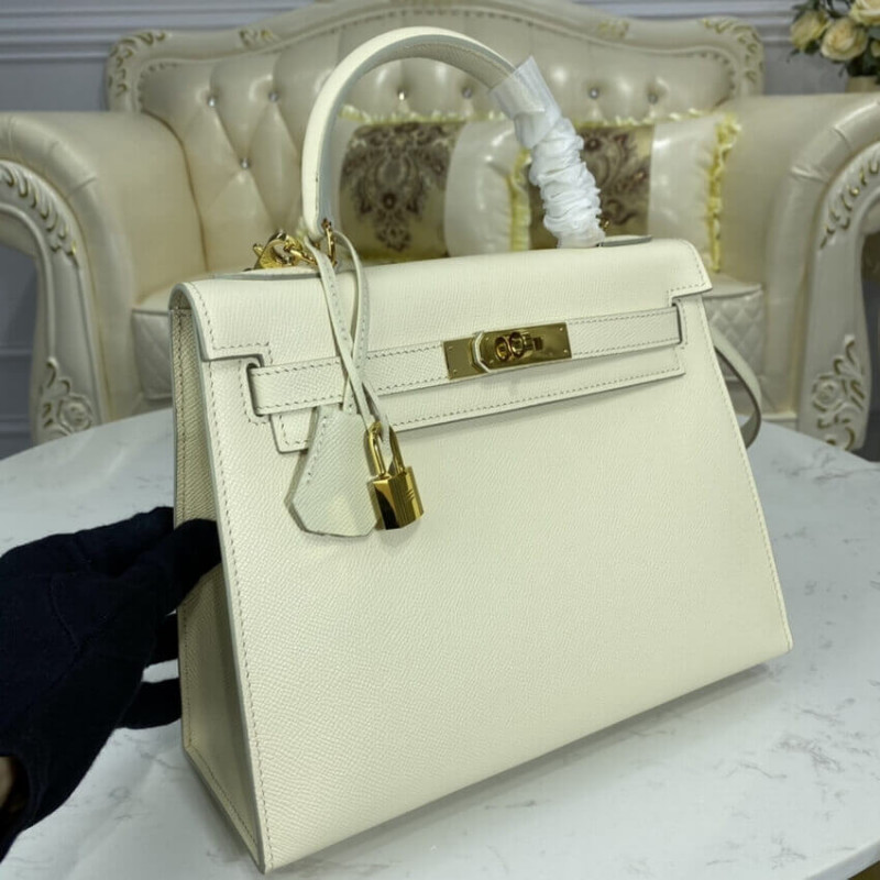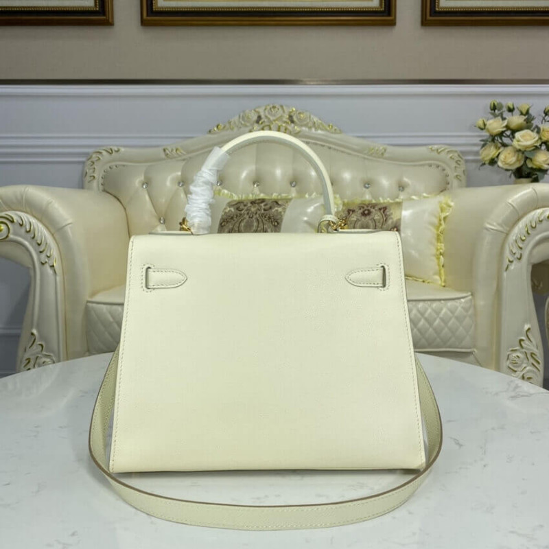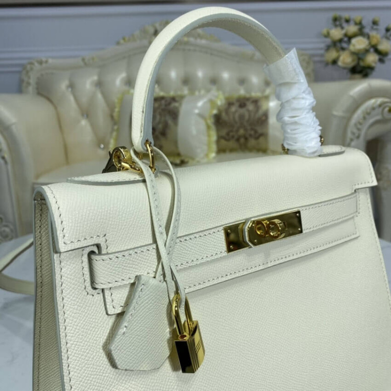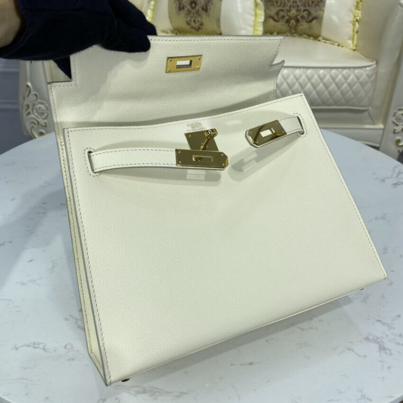Epsom Leather,This Kelly, in the Retourne style, has tonal stitching, a front toggle closure, a clochette with lock and two keys, a single rolled handle, and a removable shoulder strap.