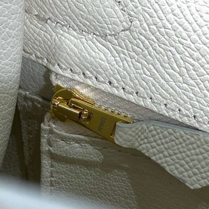 The interior is lined in chevre and has one zip pocket with Hermes engraved pull and two open pockets on the opposite side.