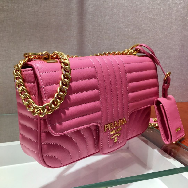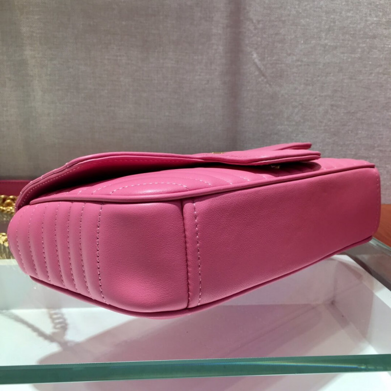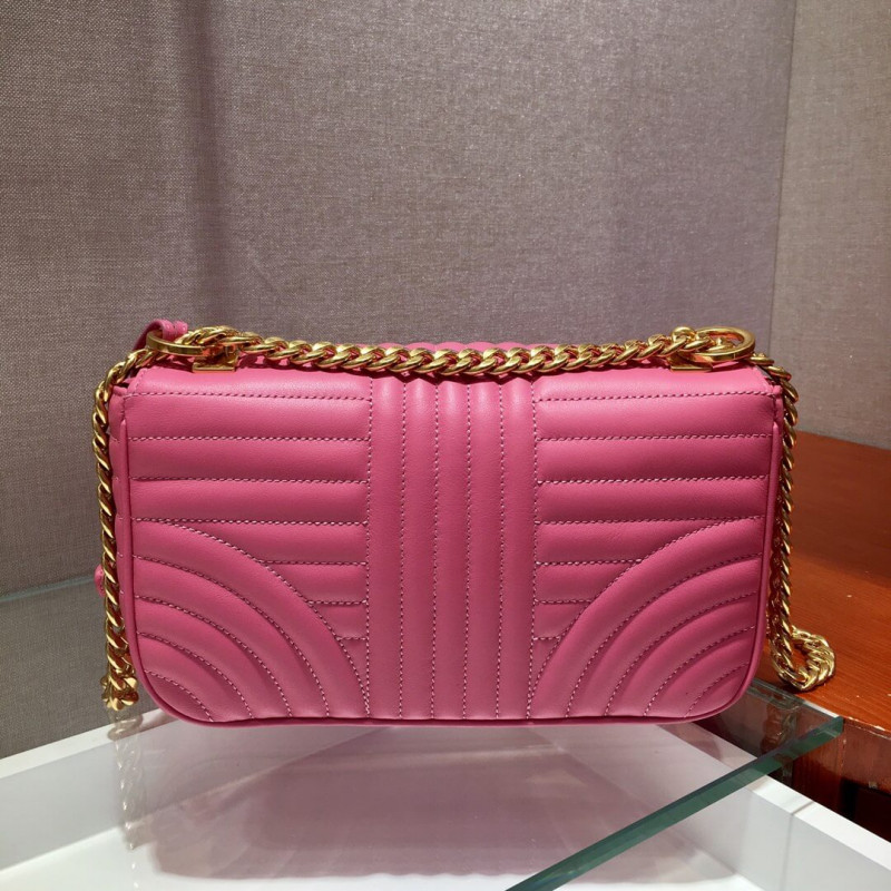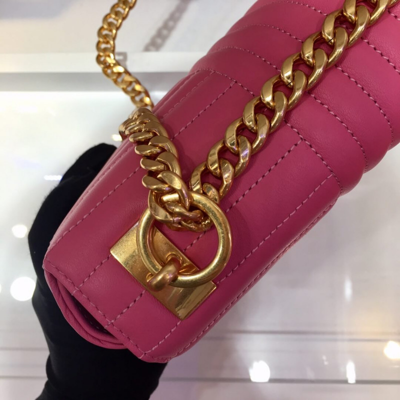 - Sliding metal chain shoulder strap with leather shoulder pad