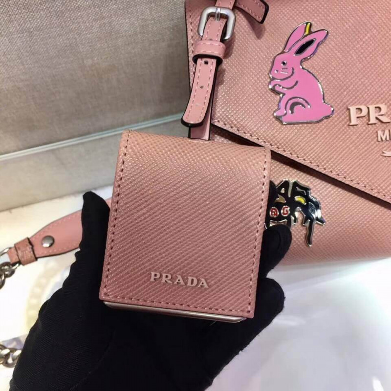 Prada Decal Rabbit Monochrome Logo Shoulder Bag 1BD127