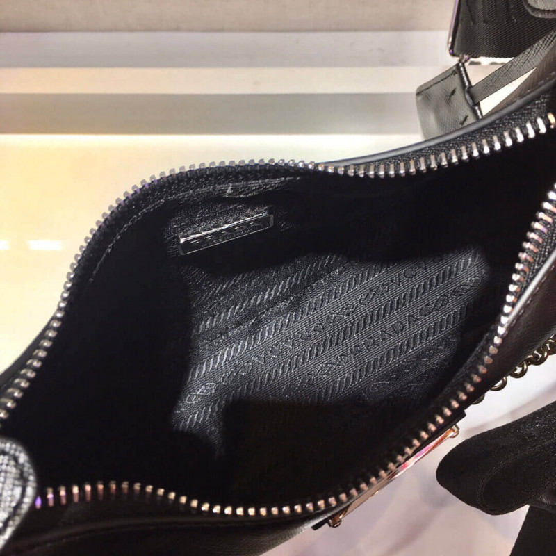 - Detachable Prada Re-edition 2005 Saffiano leather name tag with keychain