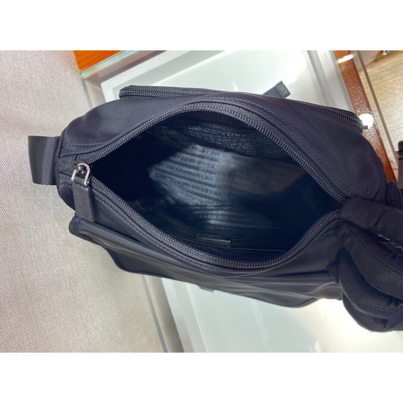 - Prada logo nylon lining with two pockets, one with a zipper