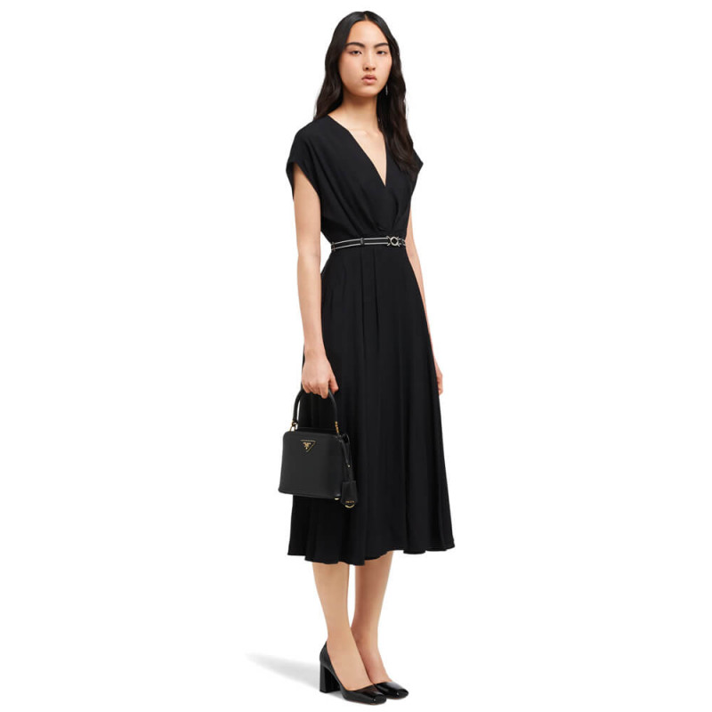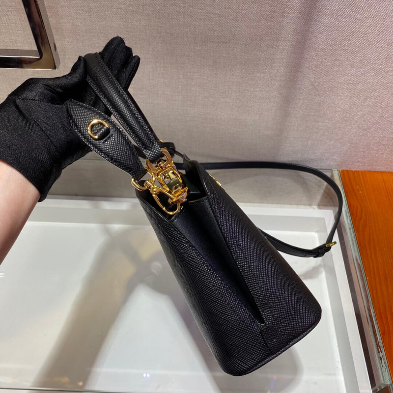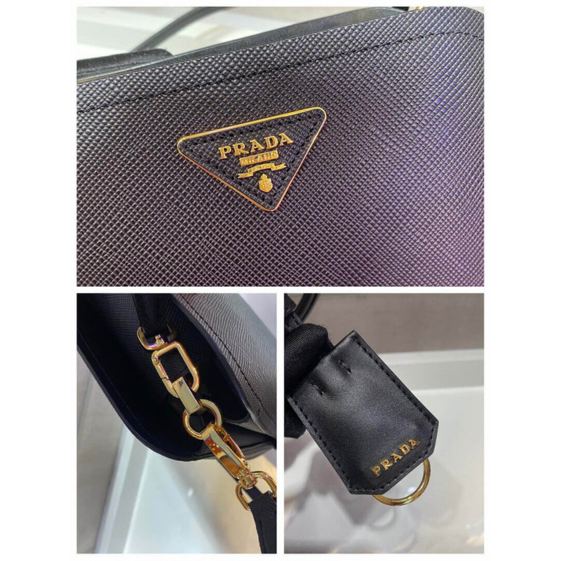 The Prada Matinée handbag has soft lines. The bag with shoulder strap and name tag expresses modern femininity.