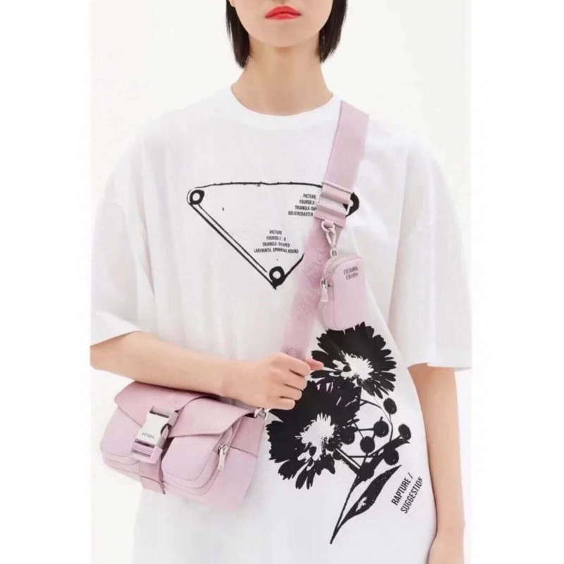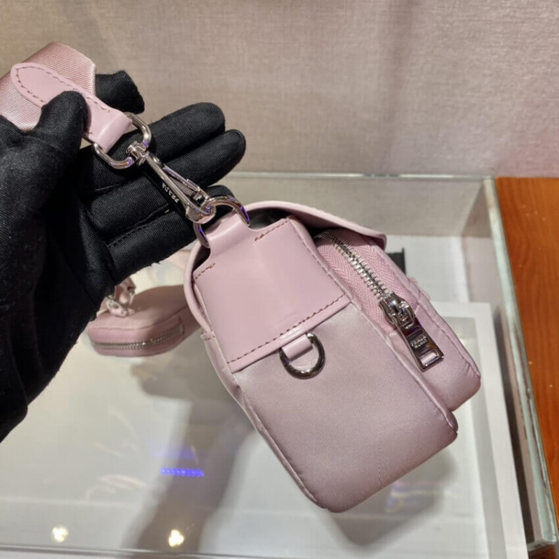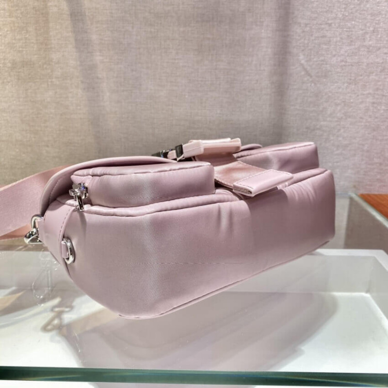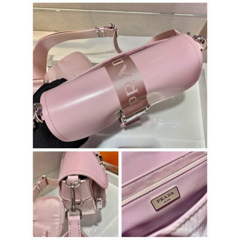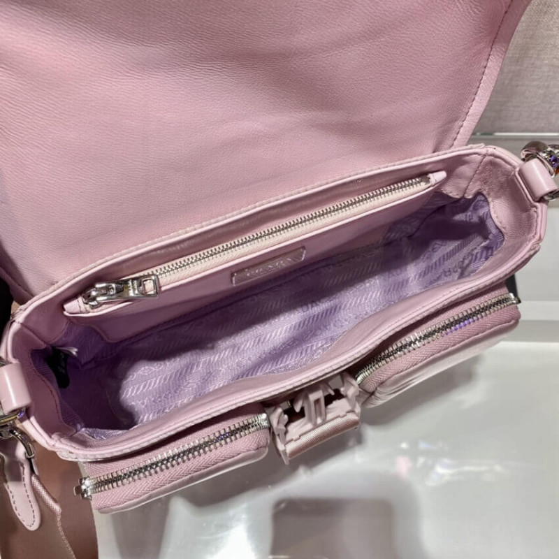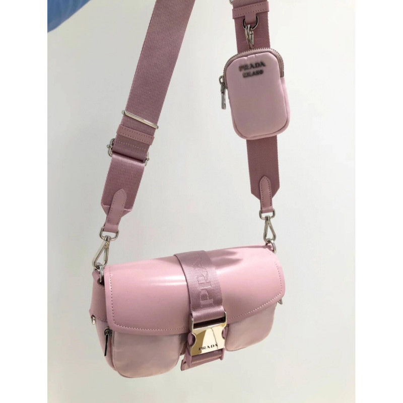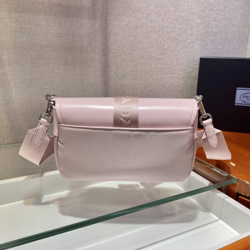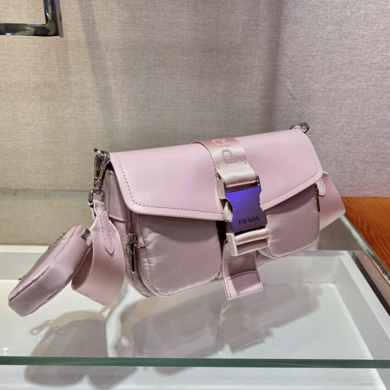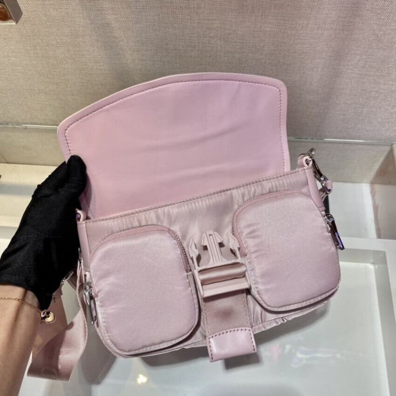 Sophisticated allure and technical-inspired details characterize this nylon and brushed leather shoulder bag. The accessory with adjustable shoulder strap is accented with a logo-engraved side-release buckle and lining in Re-Nylon, a regenerated nylon yarn produced from recycled and purified plastic trash collected in the ocean, fishing nets, and textile fiber waste.