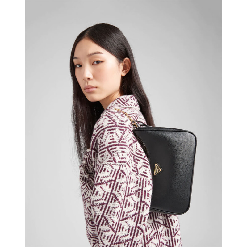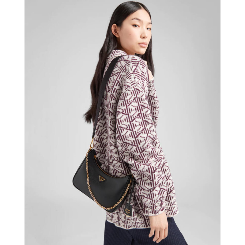 An iconic silhouette with sophisticated details that enhance the design: Prada transforms the classic shoulder bag, reinterpreting it in Saffiano leather with a cross-hatch motif that is a hallmark of the brand. The accessory is completed by a removable leather pouch and Re-Edition keychain, making the bag unique and functional.