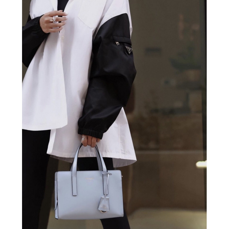 Prada Raffia and Leather Shoulder Bag 1BD243