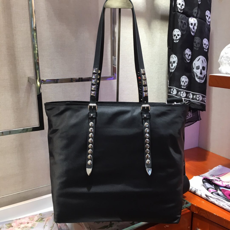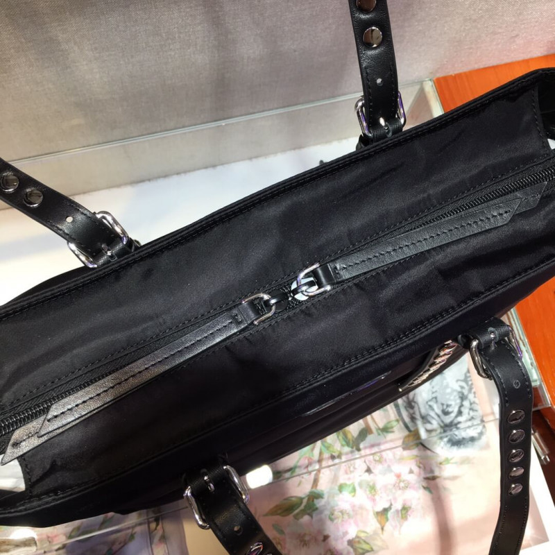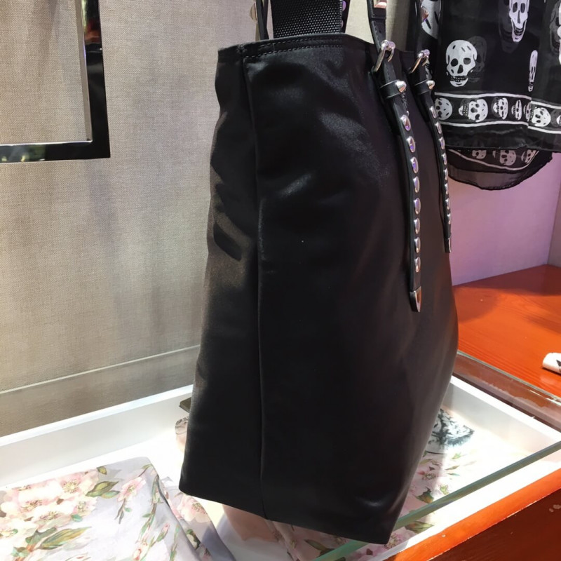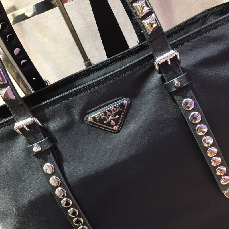 Prada Black Nylon Tote With Leather And Studs 1BG212