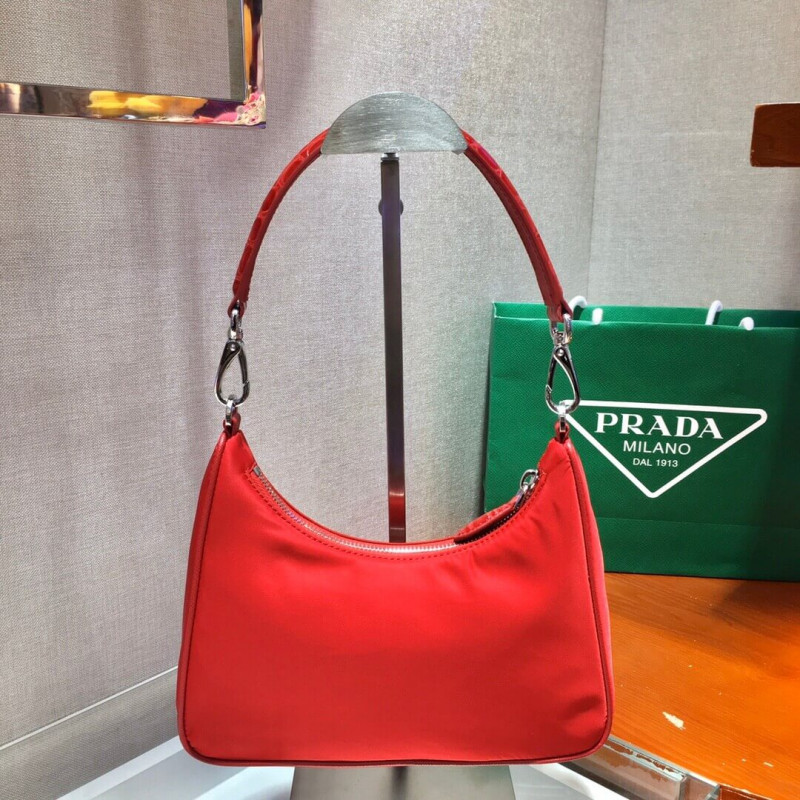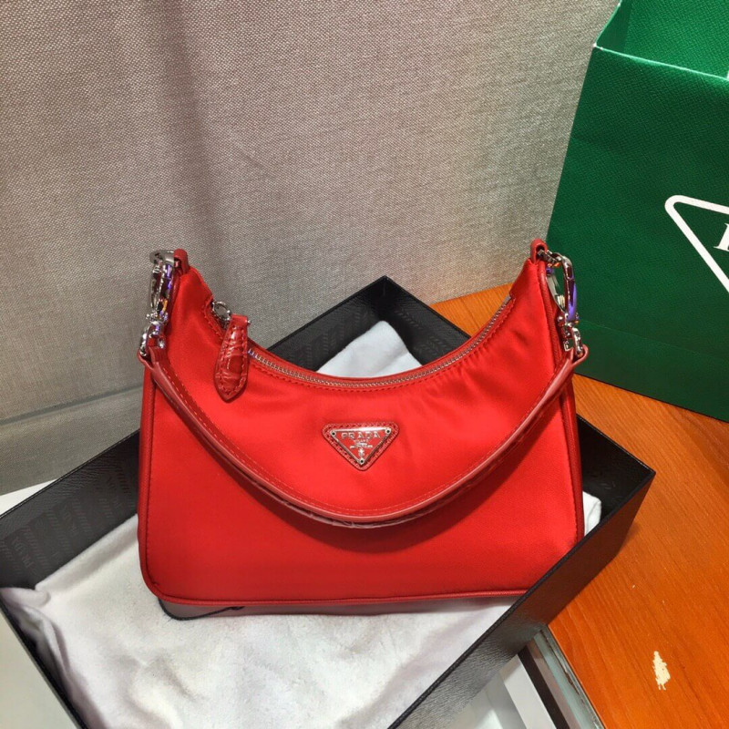 Prada Nylon And Crocodile Hobo Shoulder Bag 1BC204