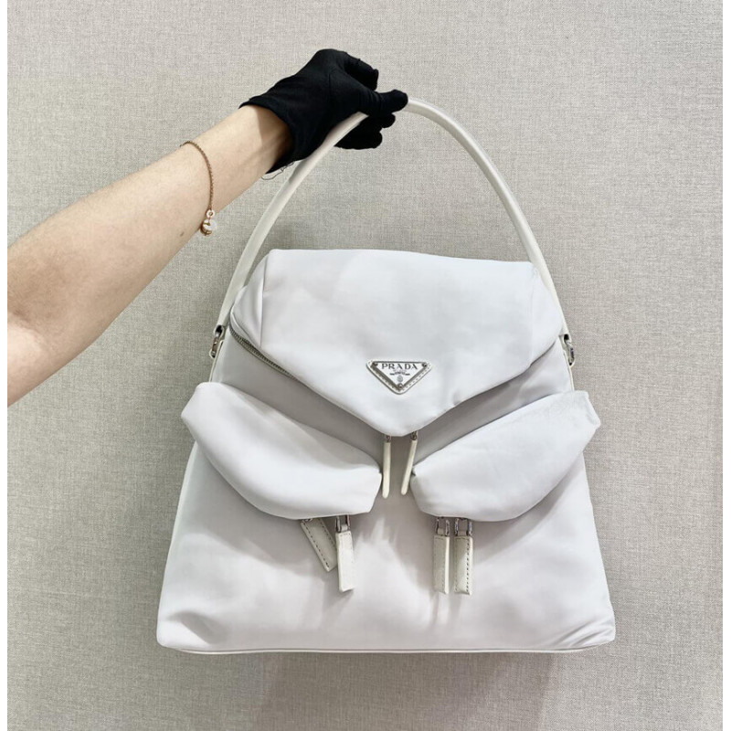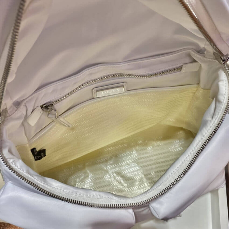 - Prada logo nylon lining with two pockets, one with zipper