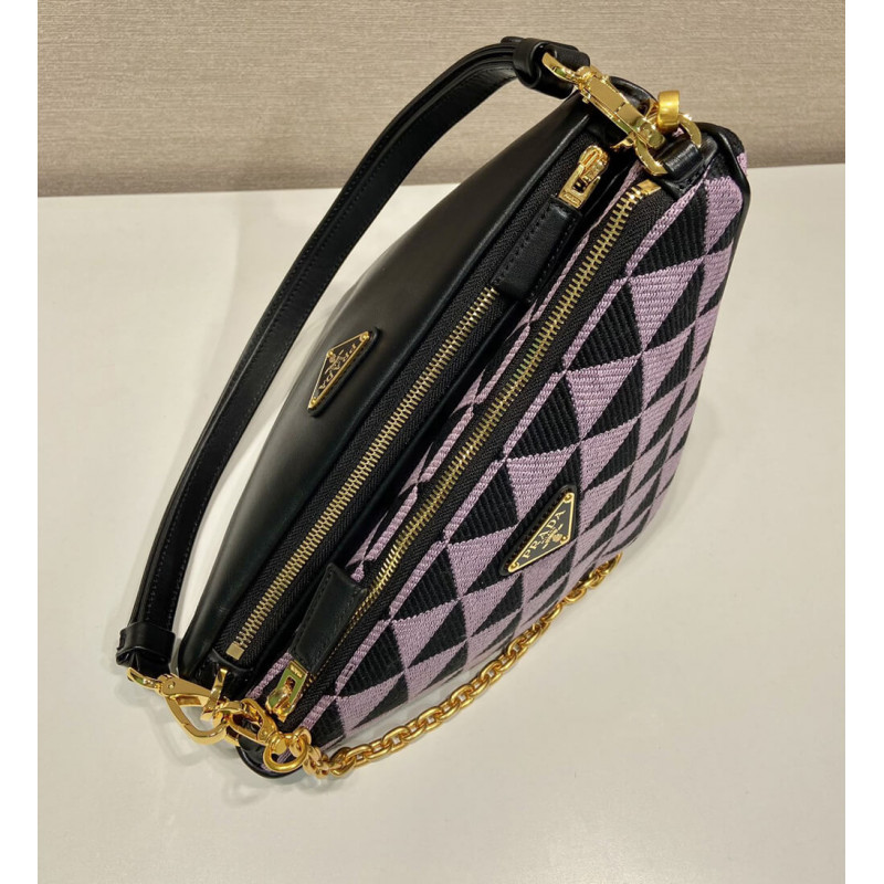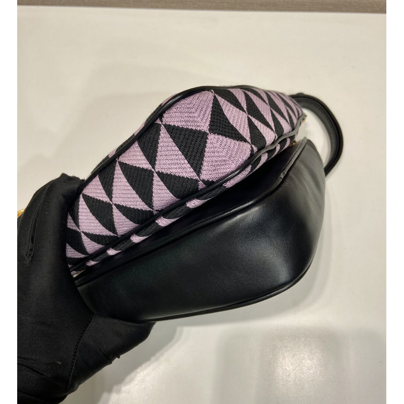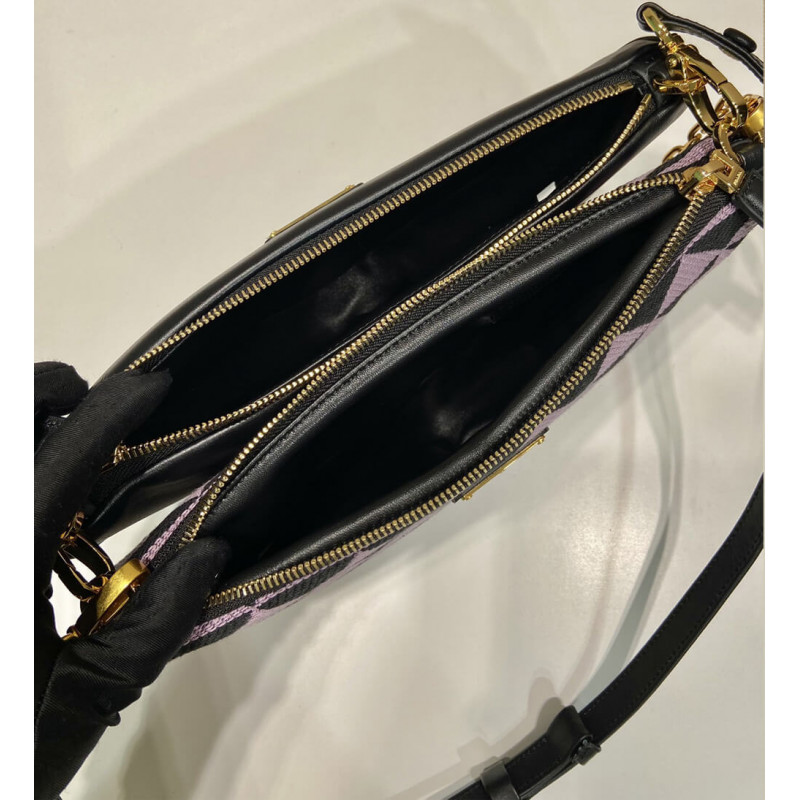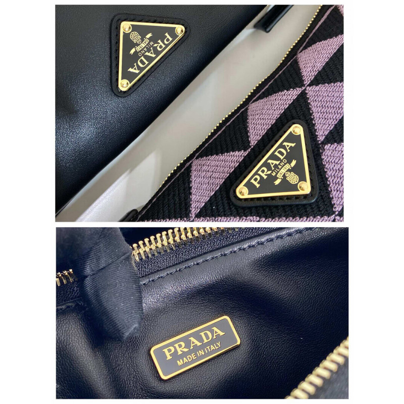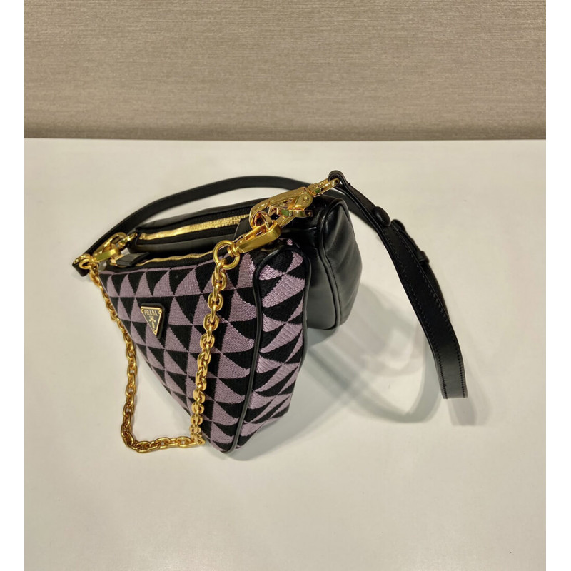 Prada Symbole Leather and Fabric Mini Bag 1BC176 Black/Alabaster White