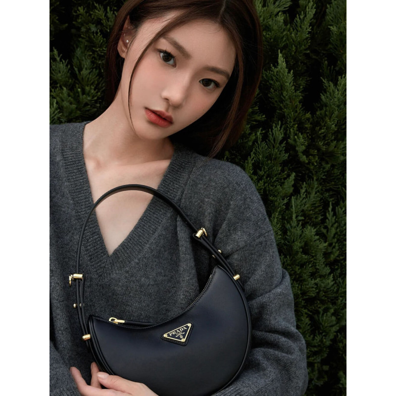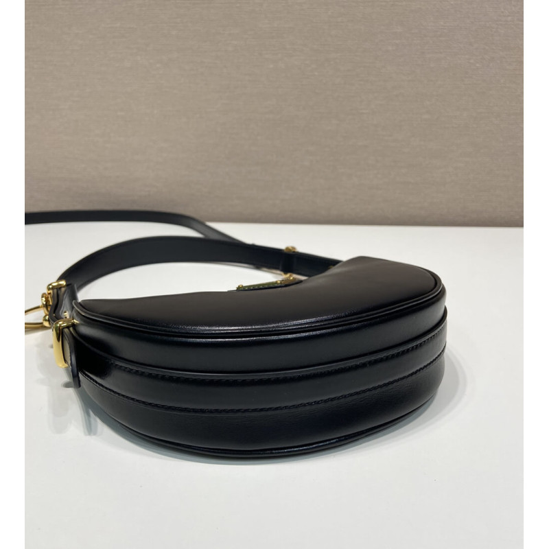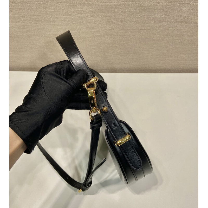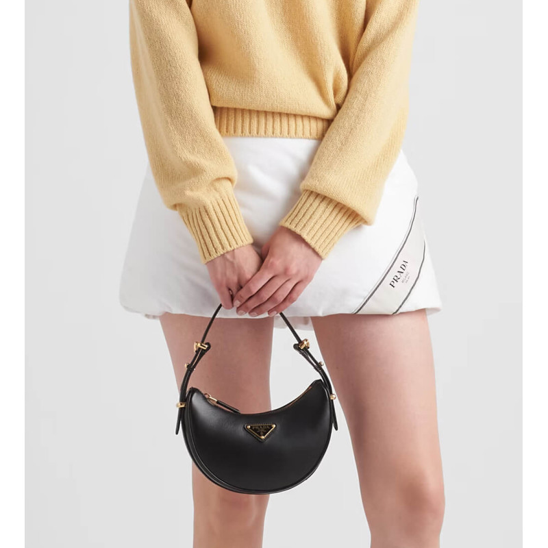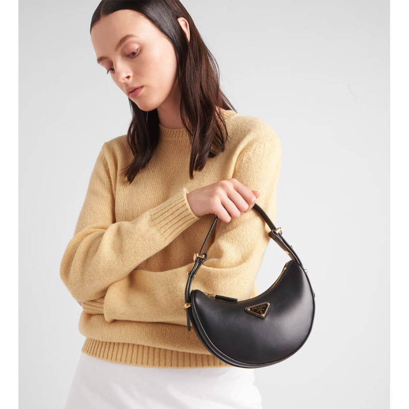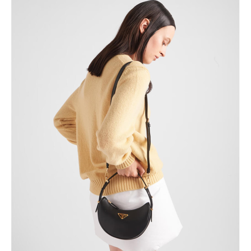 Sleek, curved lines form the silhouette of this mini-bag with contemporary charm. The versatile, compact design in leather is embellished with refined details and brightened by the shiny metal hardware. The accessory decorated with the enameled metal triangle logo comes with an elegant adjustable shoulder strap for versatile wear.