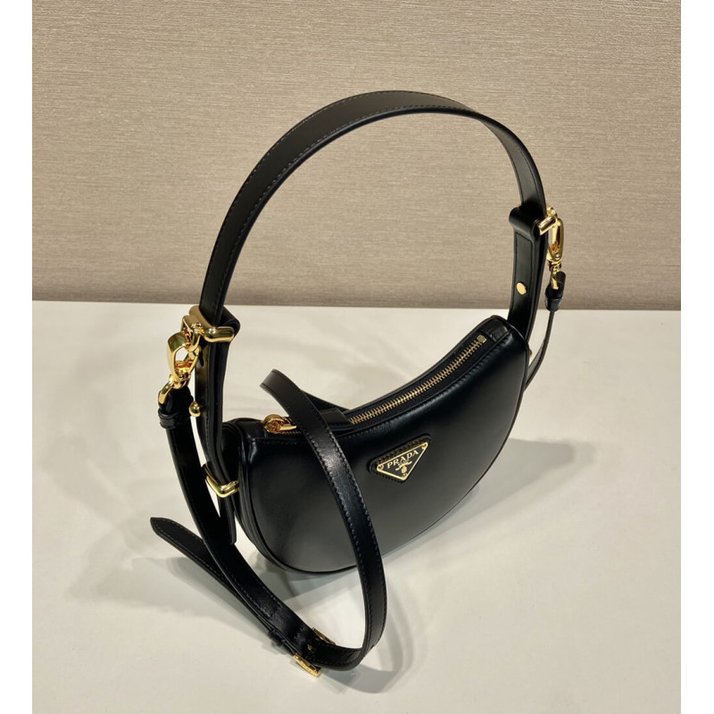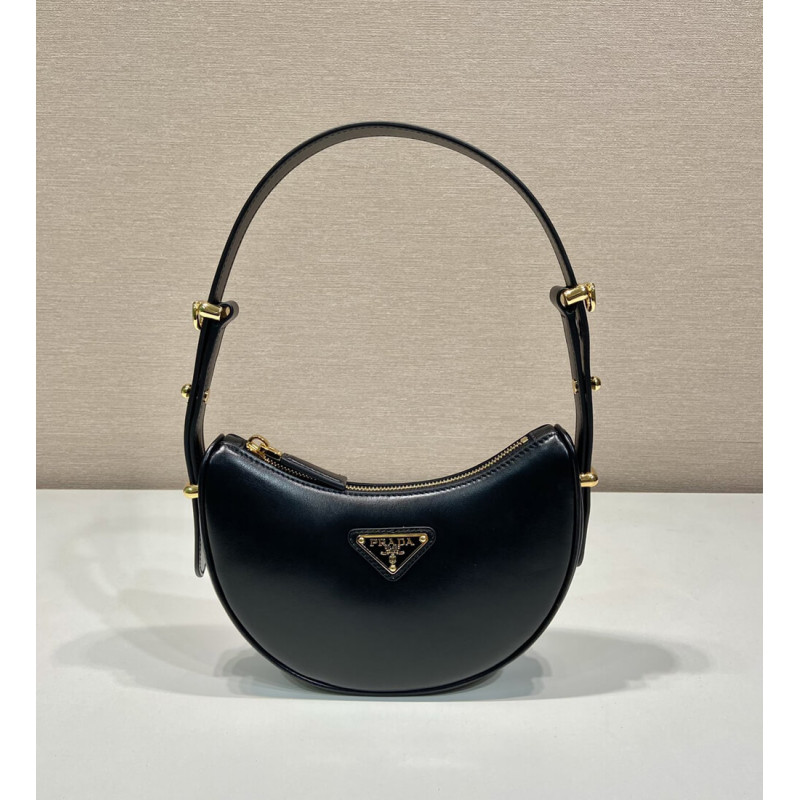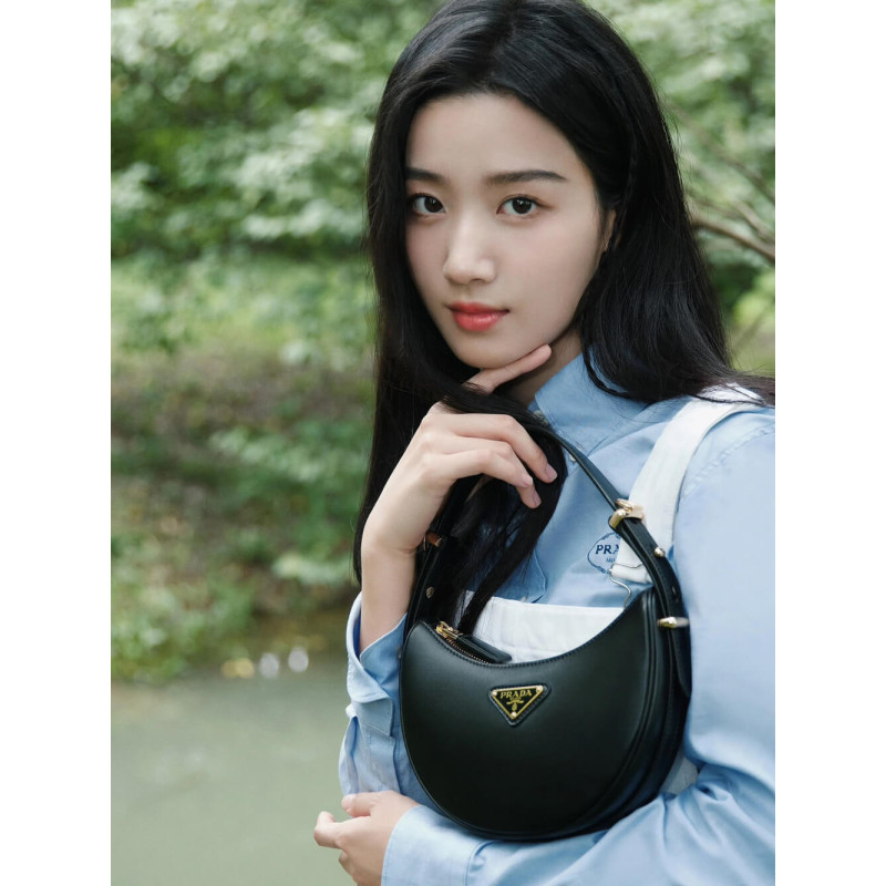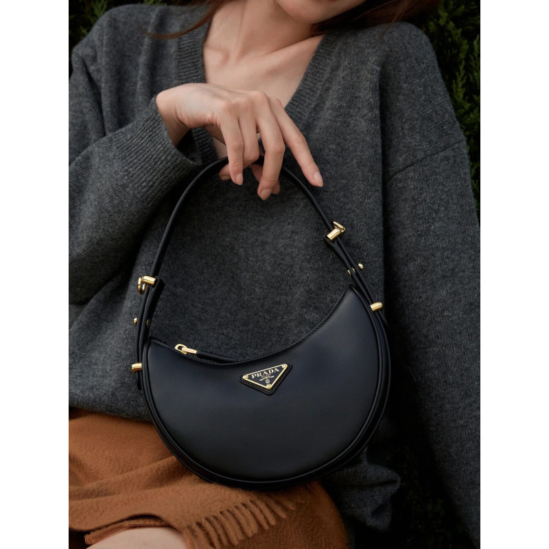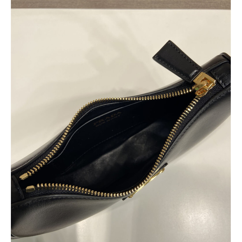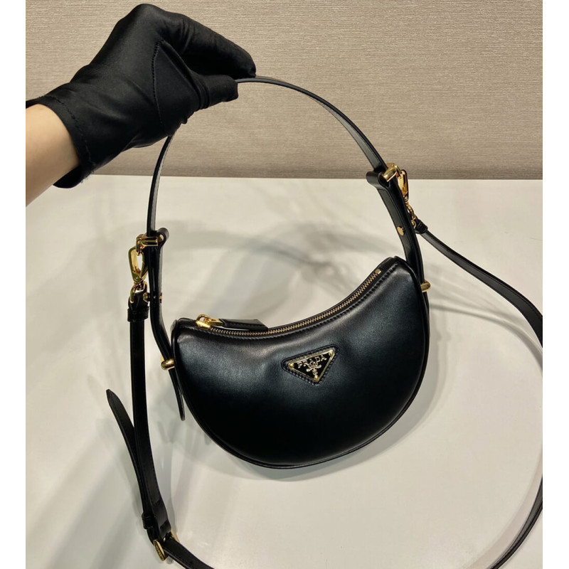 Sleek, curved lines form the silhouette of this mini-bag with contemporary charm. The versatile, compact design in leather is embellished with refined details and brightened by the shiny metal hardware. The accessory decorated with the enameled metal triangle logo comes with an elegant adjustable shoulder strap for versatile wear.
