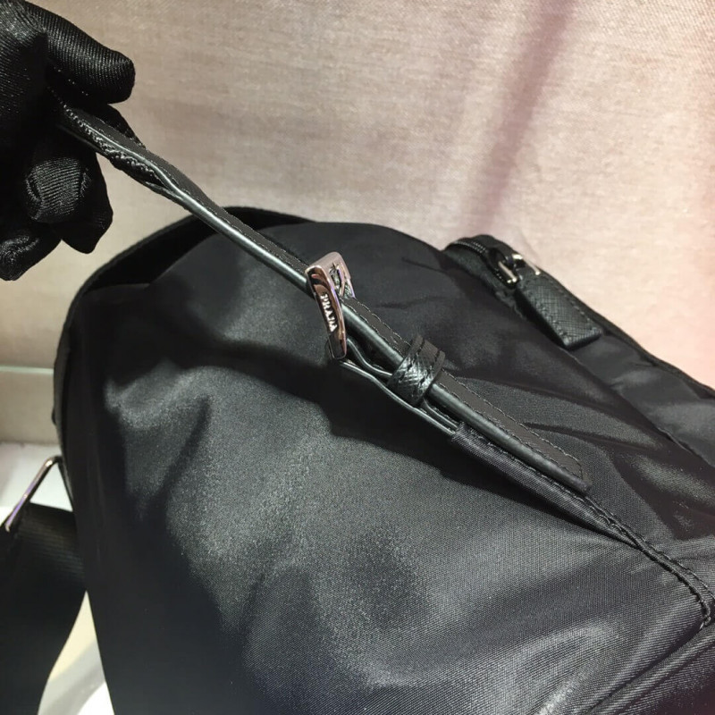 - Black nylon with Saffiano leather trim