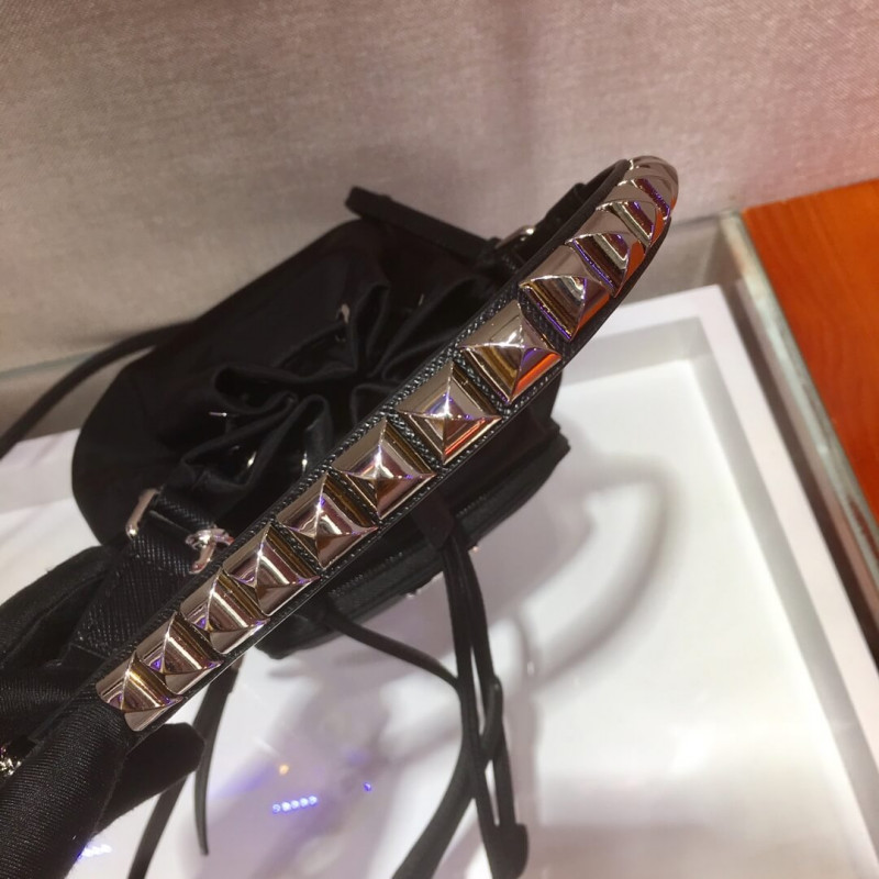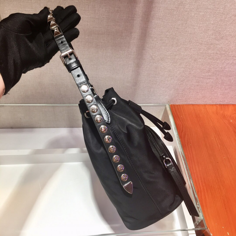 Prada Nylon Shoulder Bag With Leather And Studs 1BH038