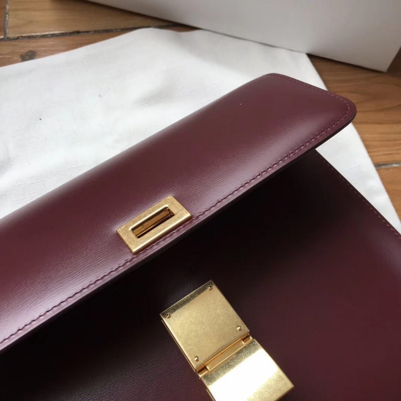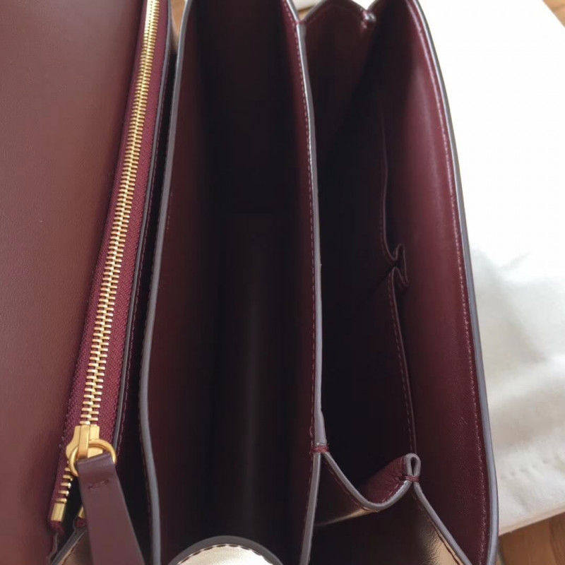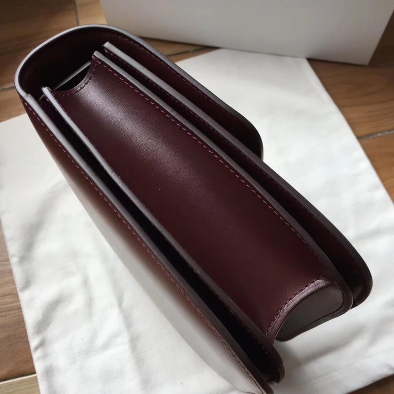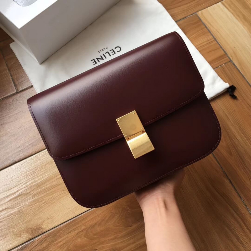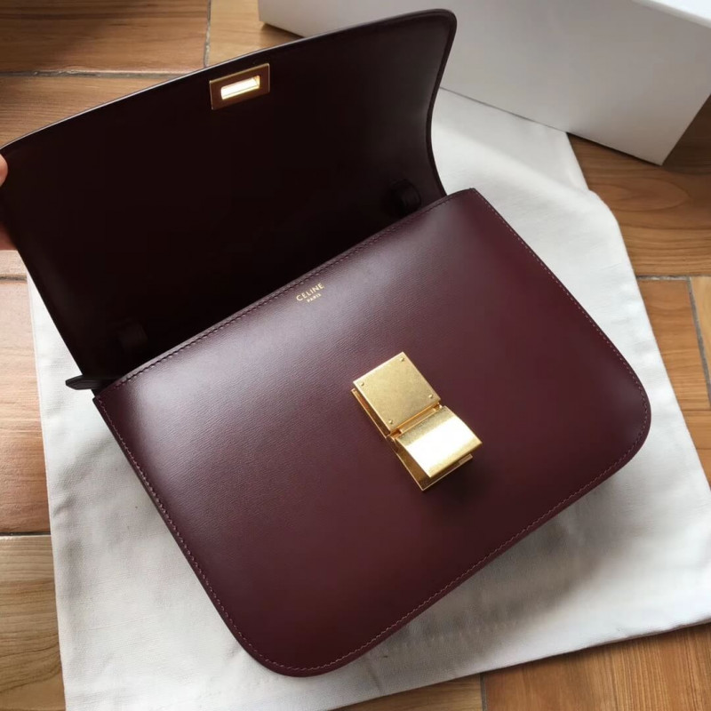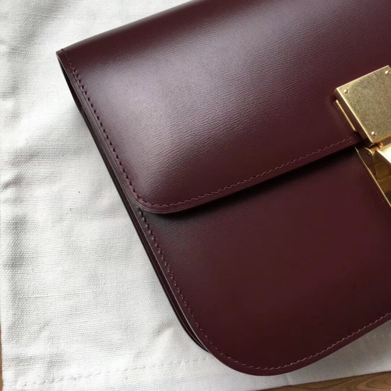 Medium classic bag in box calfskin with an adjustable and removable leather strap and a metallic clasp closure.