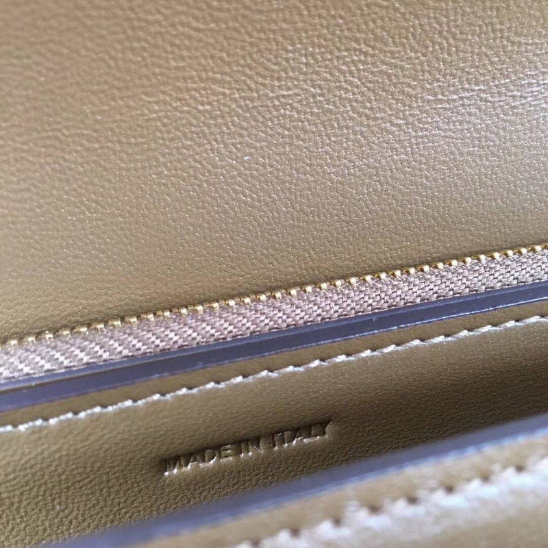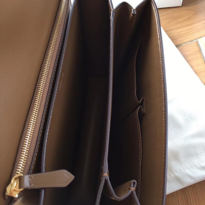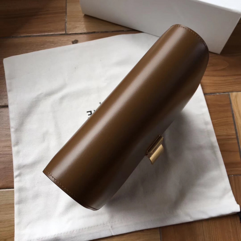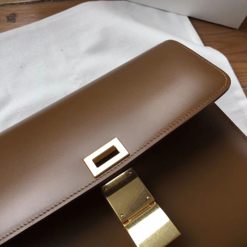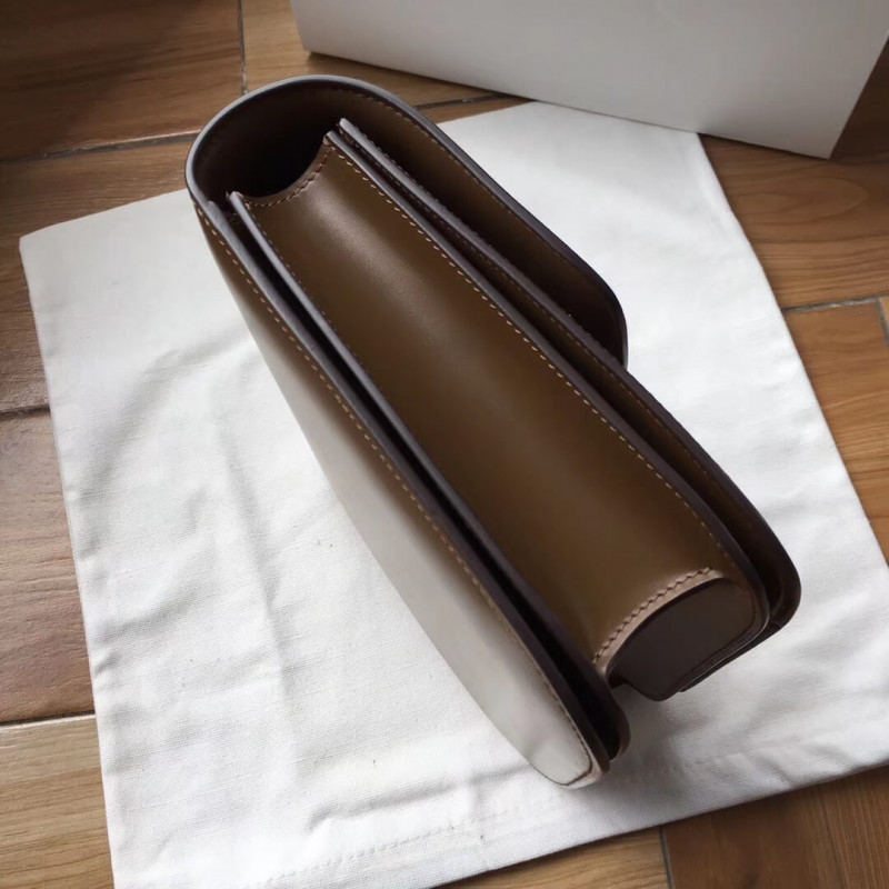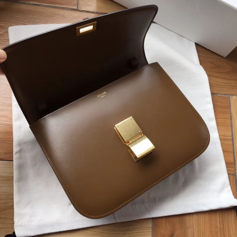Medium classic bag in box calfskin with an adjustable and removable leather strap and a metallic clasp closure.