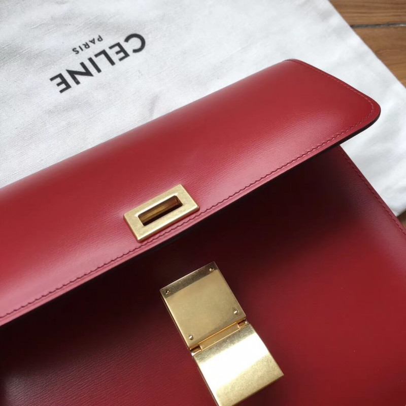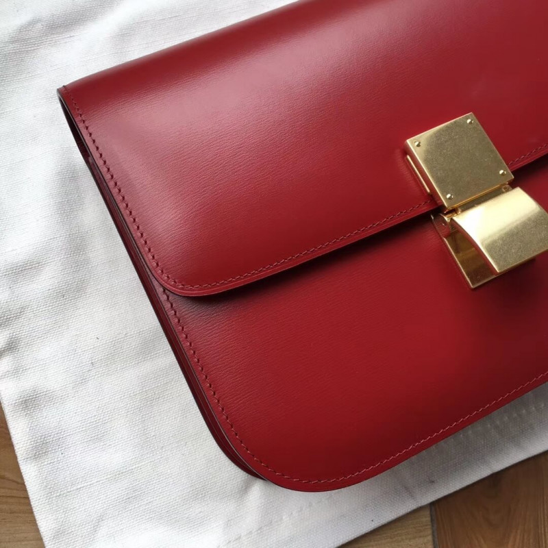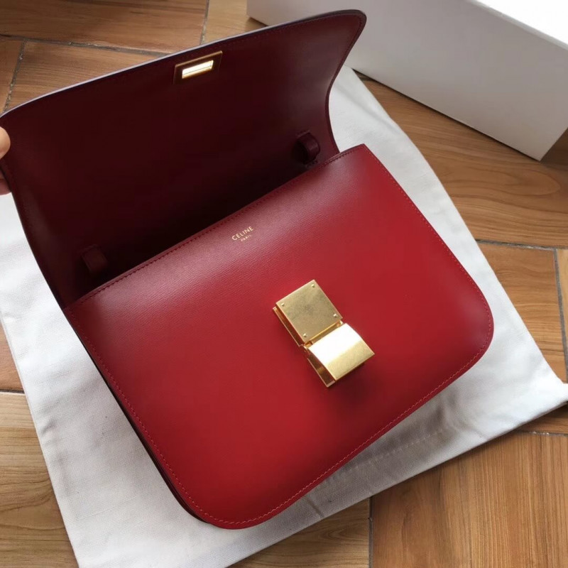 Medium classic bag in box calfskin with an adjustable and removable leather strap and a metallic clasp closure.