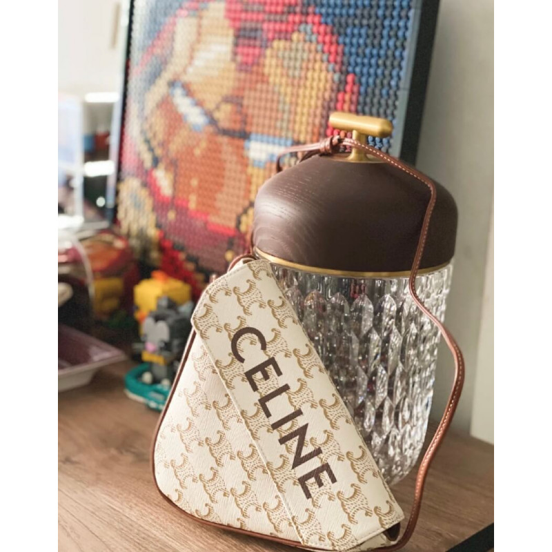 Celine Teen Triomphe Bag In Textile and Calfskin Natural/Tan 188423