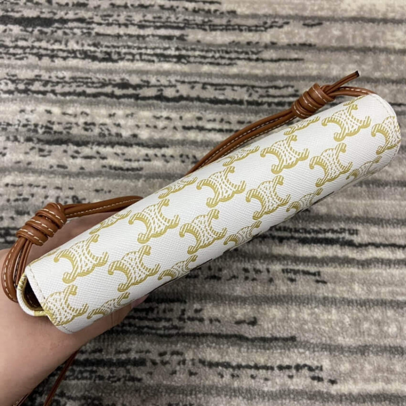 Celine Teen Triomphe Bag In Triomphe Canvas and Calfskin White 188423