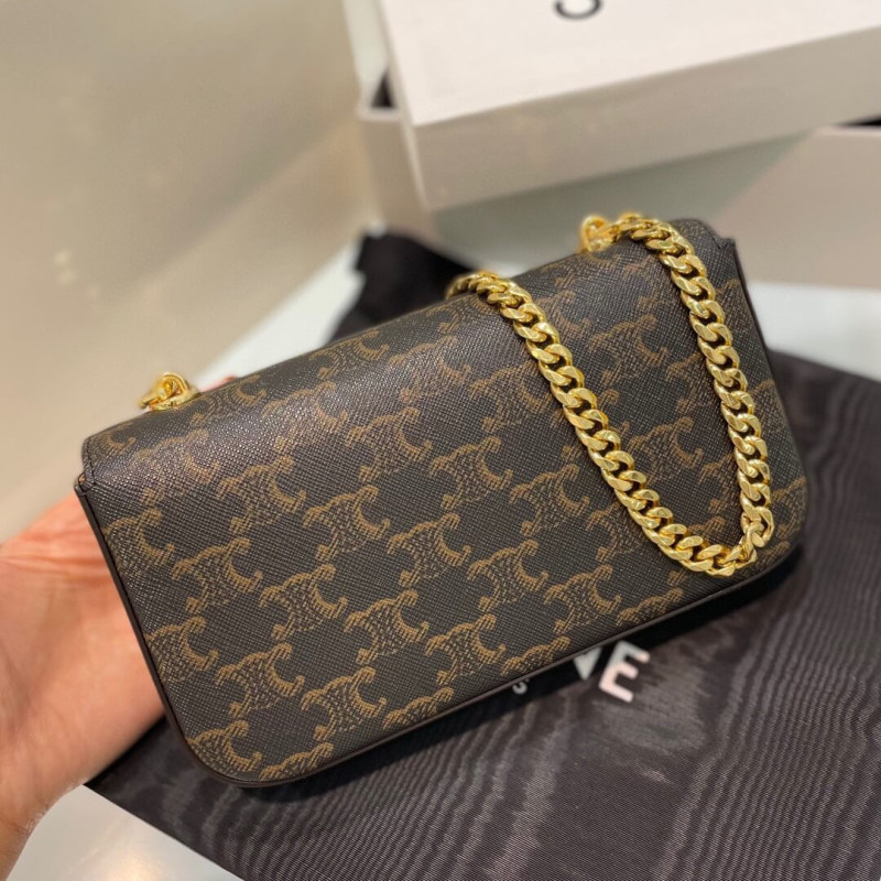 Celine Chain Shoulder Bag Claude In Triomphe Canvas 197992