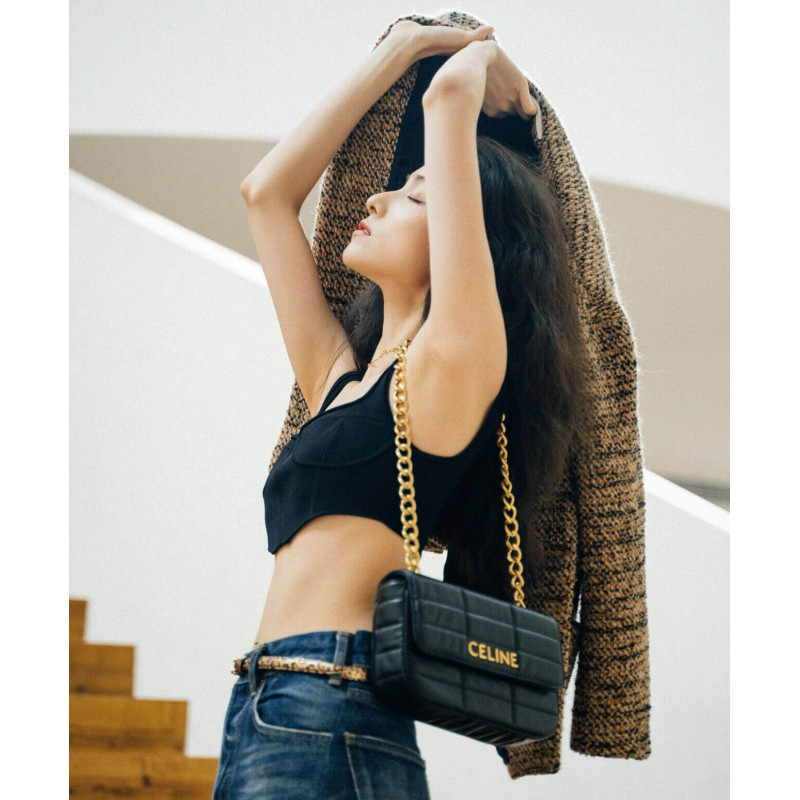Celine Matelasse Chain Shoulder Bag 111273 Quilted Black