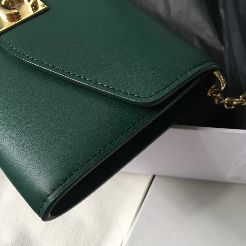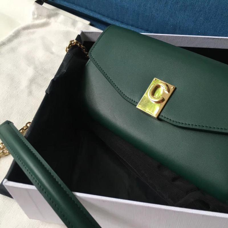 C wallet on chain in smooth calfskin with flap and c snap button.