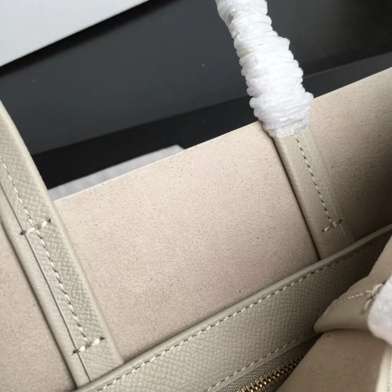 Small cabas in grained calfskin with leather handles and an adjustable and removable shoulder strap.