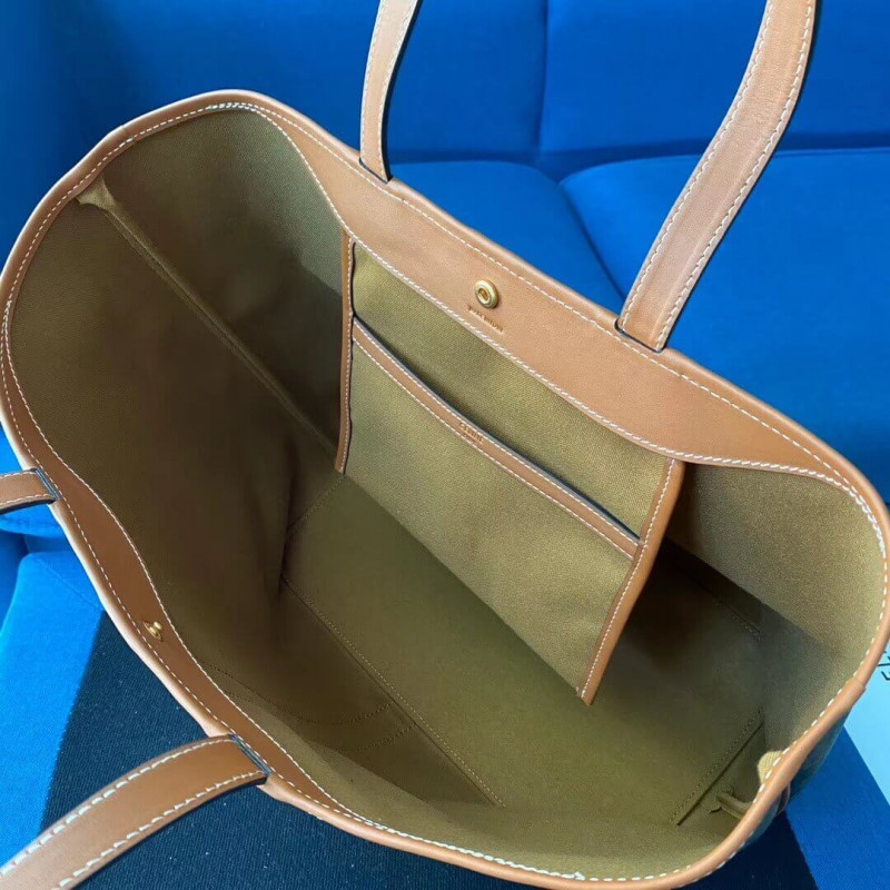 Medium shopping bag in triomphe canvas, with handles and a snap button closure.