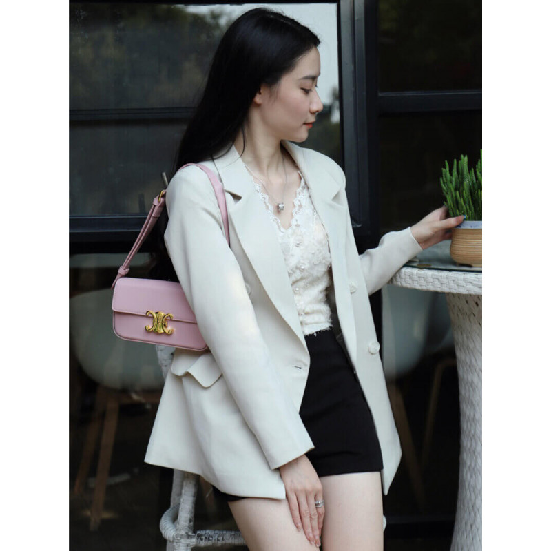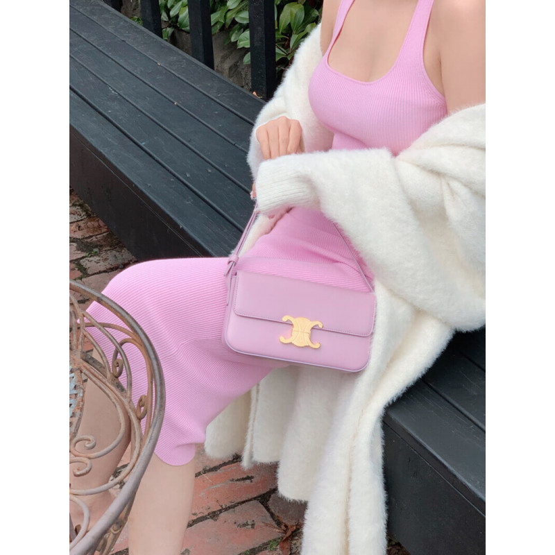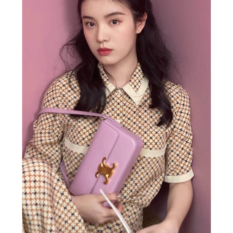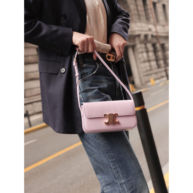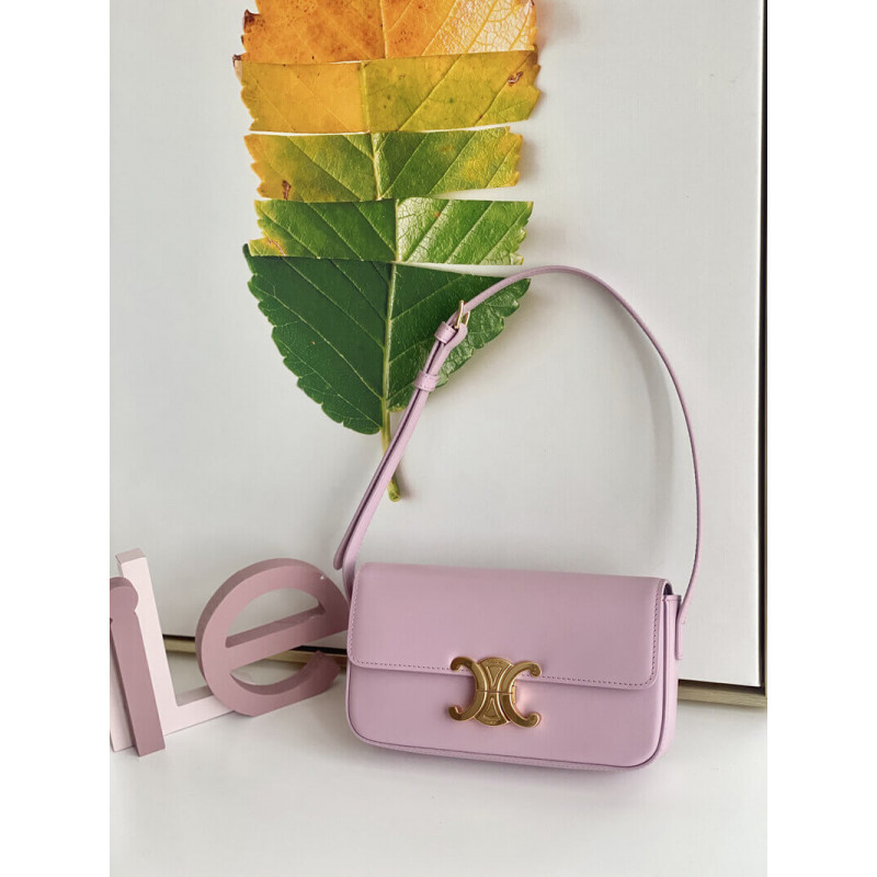 Celine Triomphe Shoulder Bag In Shiny Calfskin 194143 Lavender Grey