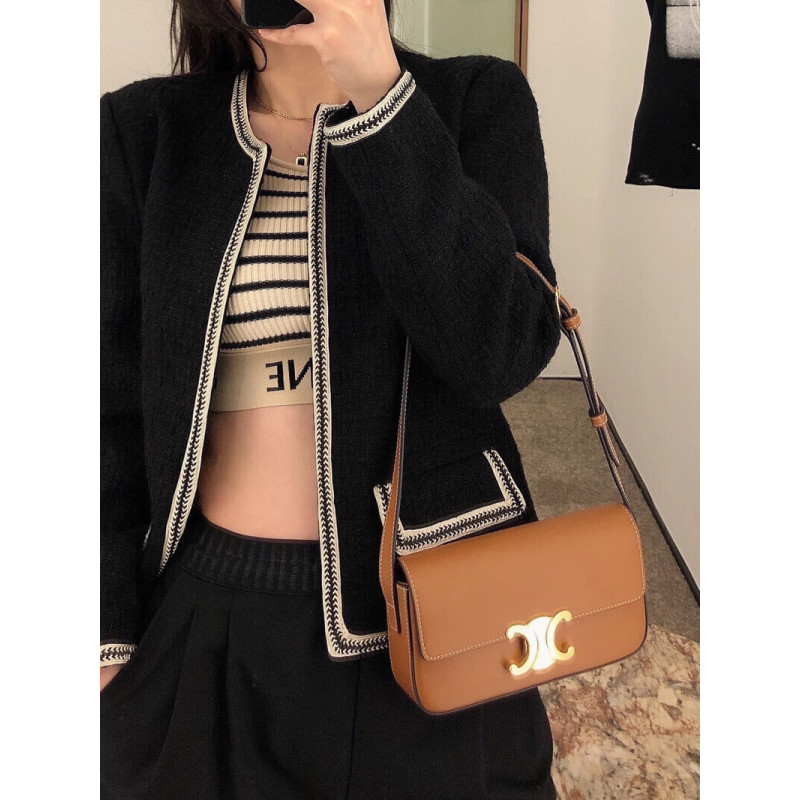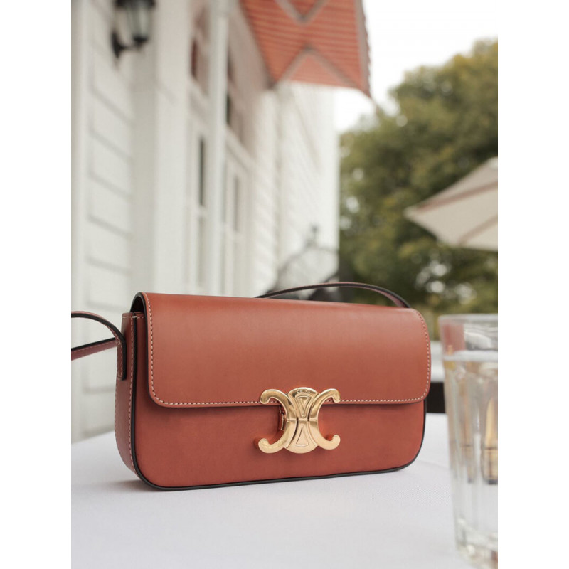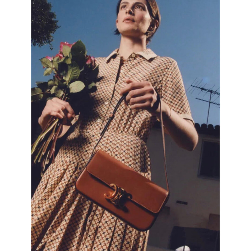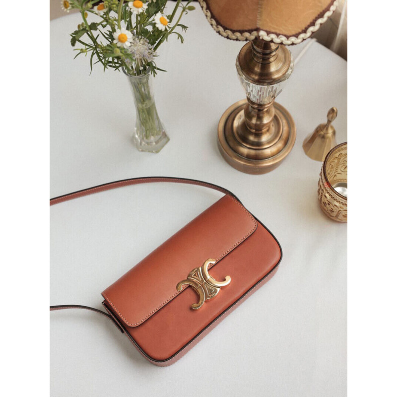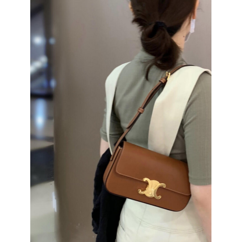 Celine Triomphe Shoulder Bag In Natural Calfskin 194143 Tan