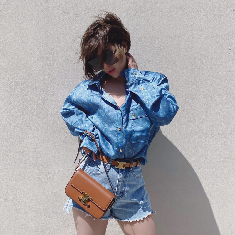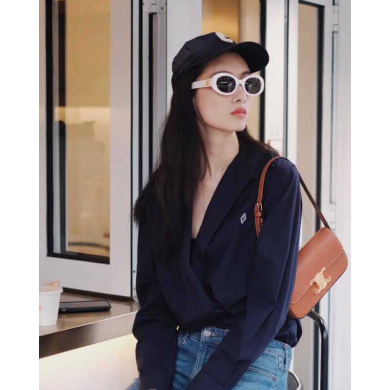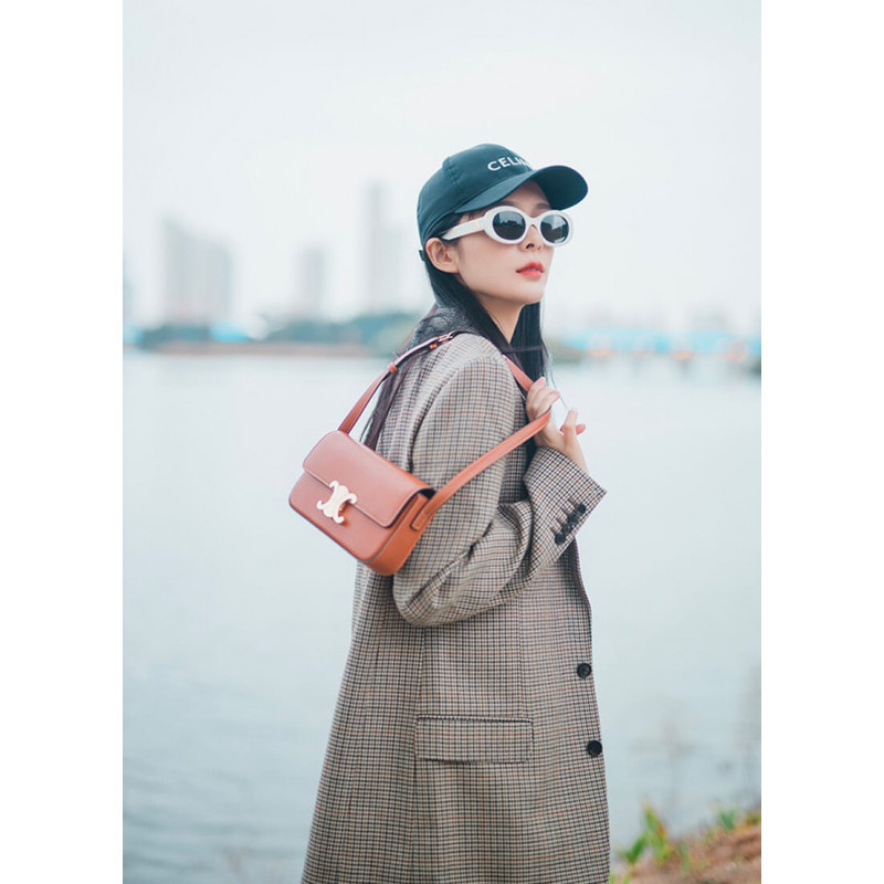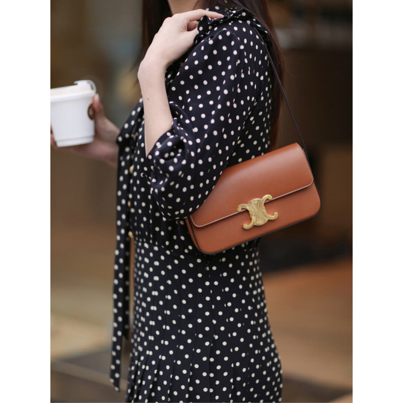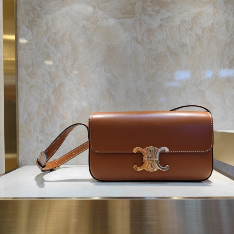 Celine Triomphe Shoulder Bag In Natural Calfskin 194143 Tan