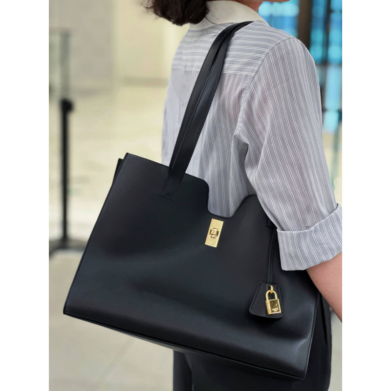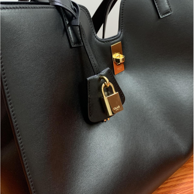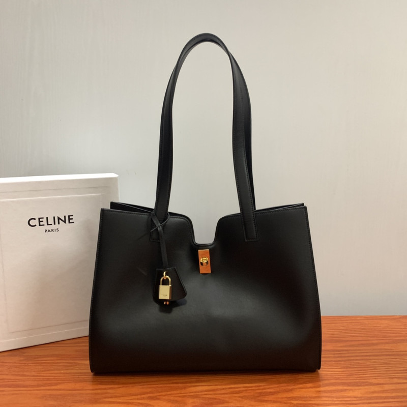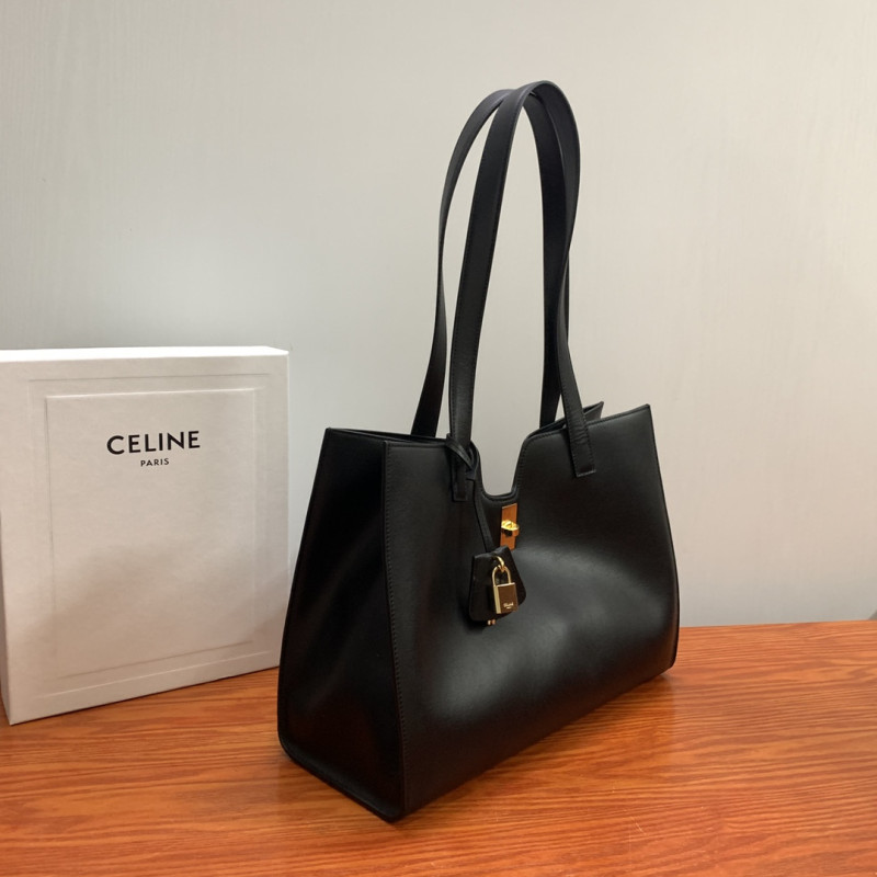 Celine Triomphe Shoulder Bag In Shiny Calfskin 194143 Black