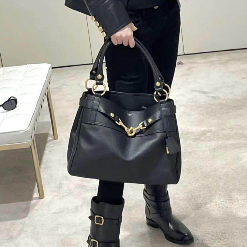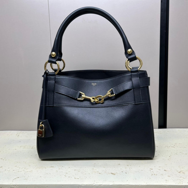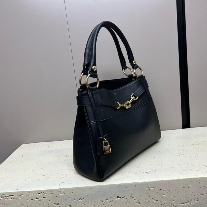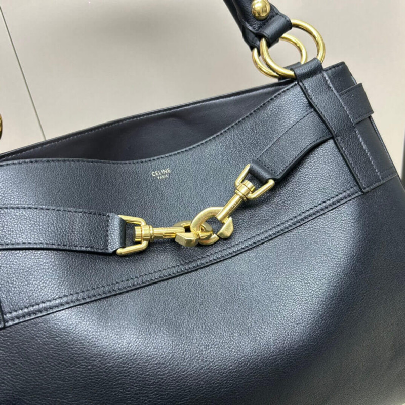 Celine Triomphe Shoulder Bag In Shiny Calfskin 194143 Black