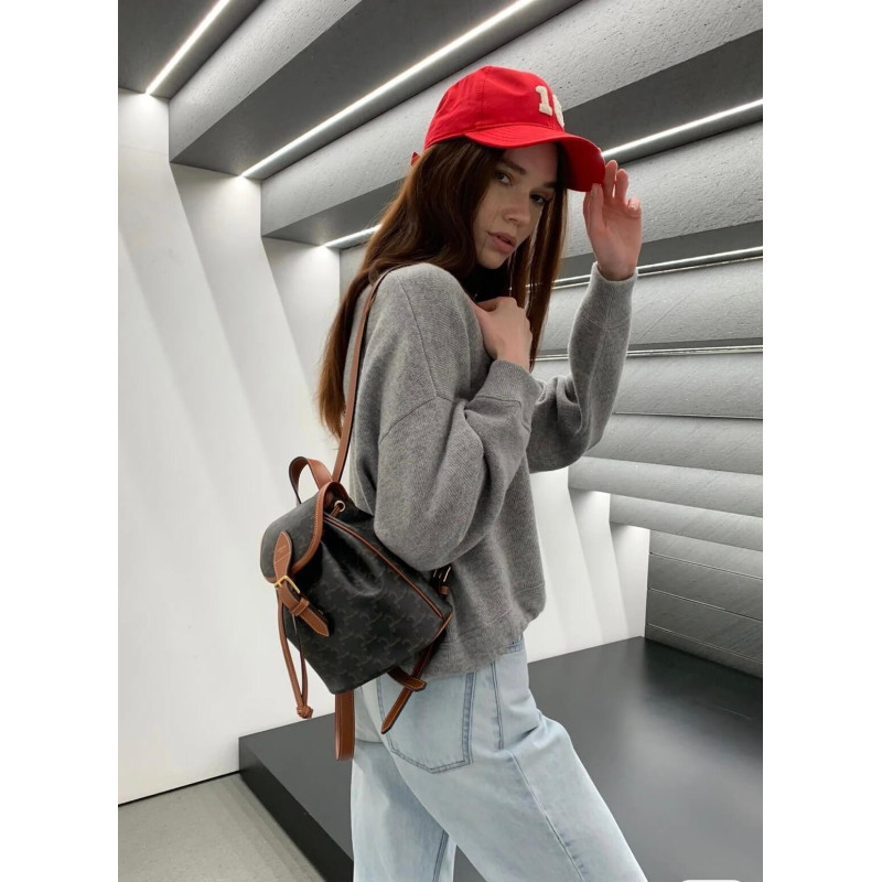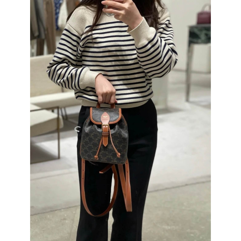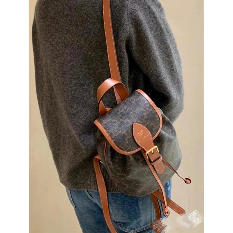 Celine Mini Backpack Folco In Triomphe Canvas And Calfskin 197662