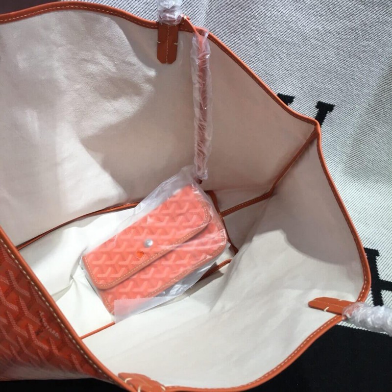 This stylish tote is crafted of coated canvas with the classic Goyard chevron monogram. The bag features black leather straps handles and top border trim. The top is open to a spacious linen interior with a matching removable pouch.