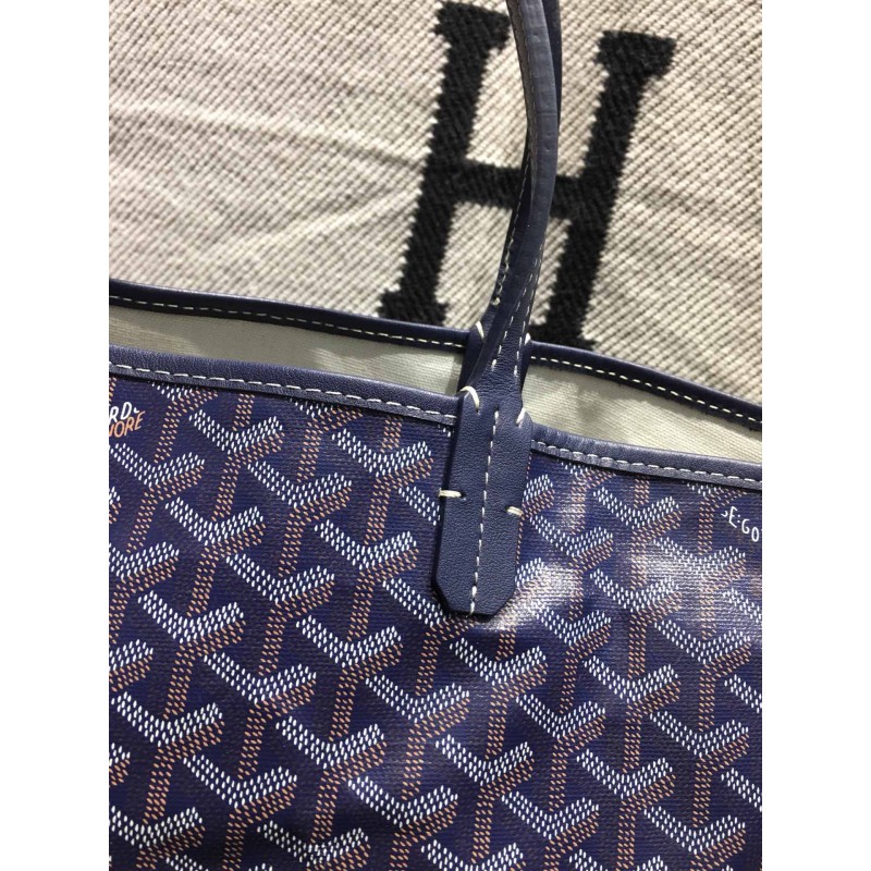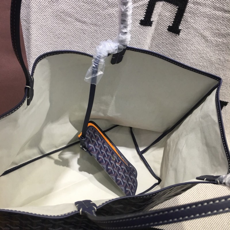 This stylish tote is crafted of coated canvas with the classic Goyard chevron monogram. The bag features black leather straps handles and top border trim. The top is open to a spacious linen interior with a matching removable pouch.