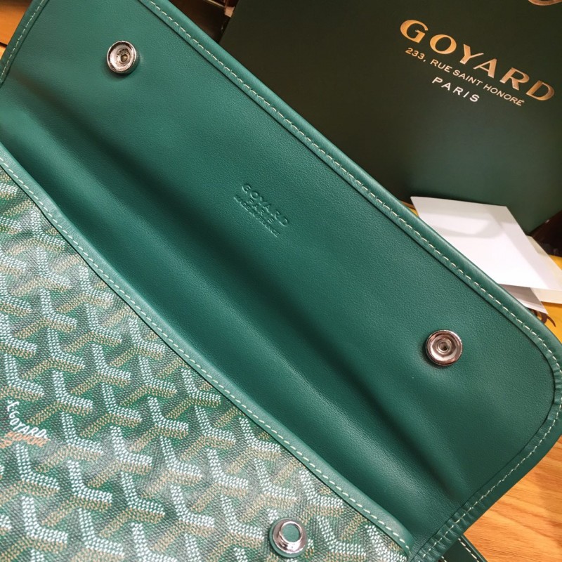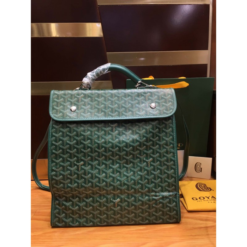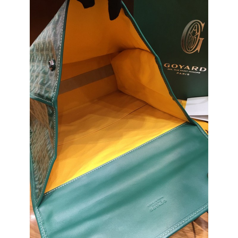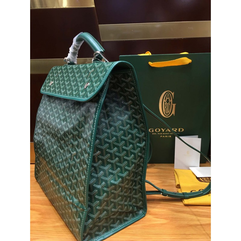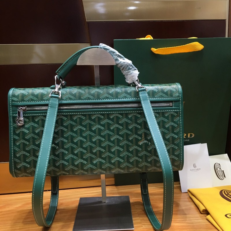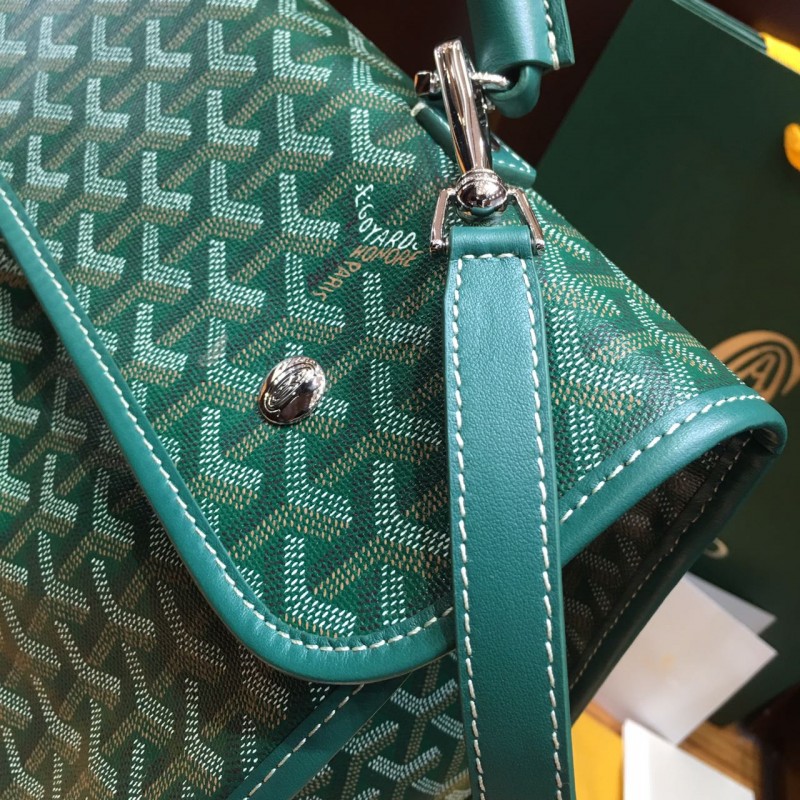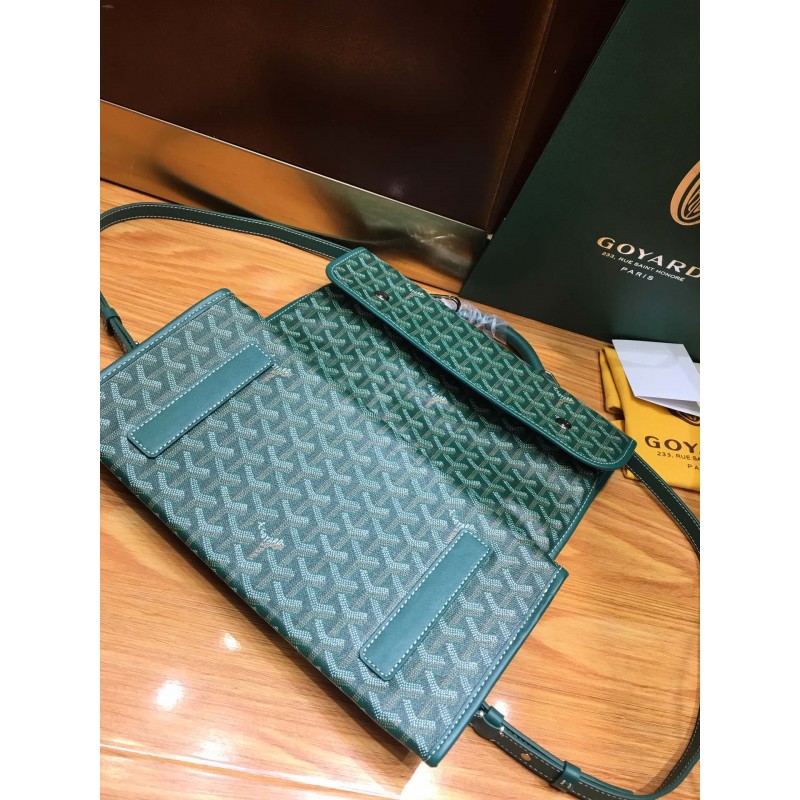 This stylish messenger bag is crafted of black Goyard monogram chevron canvas. The bag features an adjustable body strap, leather trim, belts and sides of black leather with polished silver hardware. The front flap opens to a lemon yellow fabric interior.