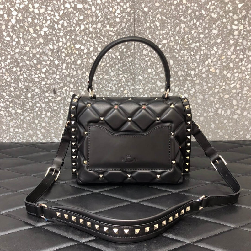 Valentino Garavani s Candystud bag was featured in the label s Spring 18 campaign, held by supermodel Gigi Hadid. Made from quilted leather, it s decorated with an abbreviated version of the house s moniker and signature pyramid studs. The satin-lined interior is sized for just the essentials, while the back is fitted with an exterior slit pocket to keep your important cards close at hand.
