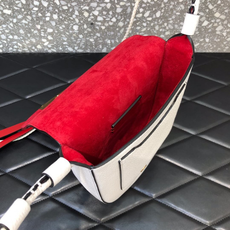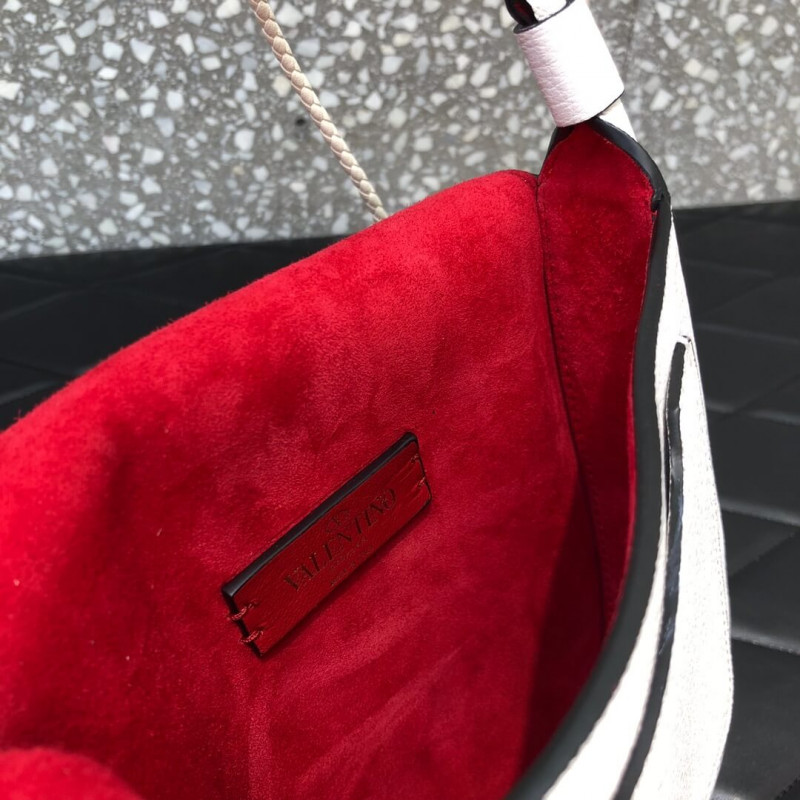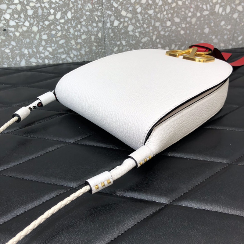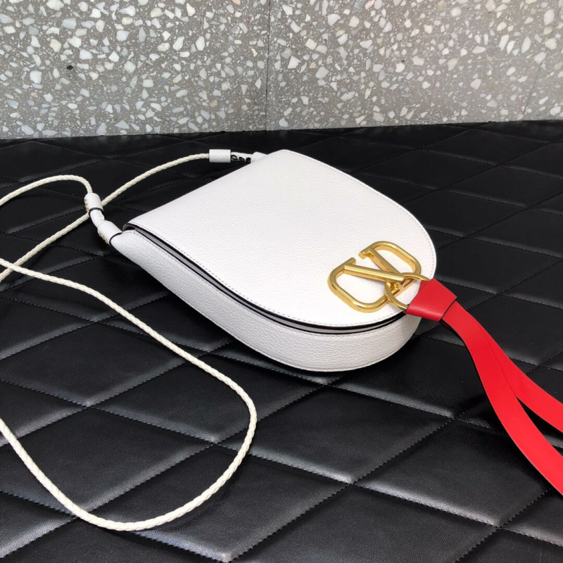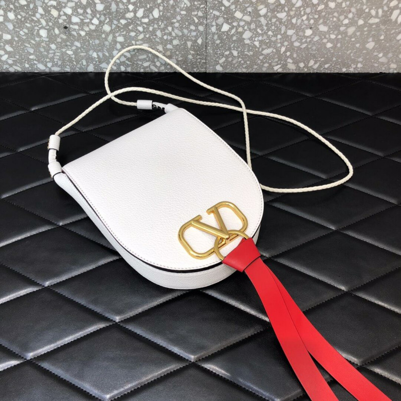 Valentino Garavani VRING goatskin crossbody bag. This bag features a metal logo, adorned with a ring and tie.