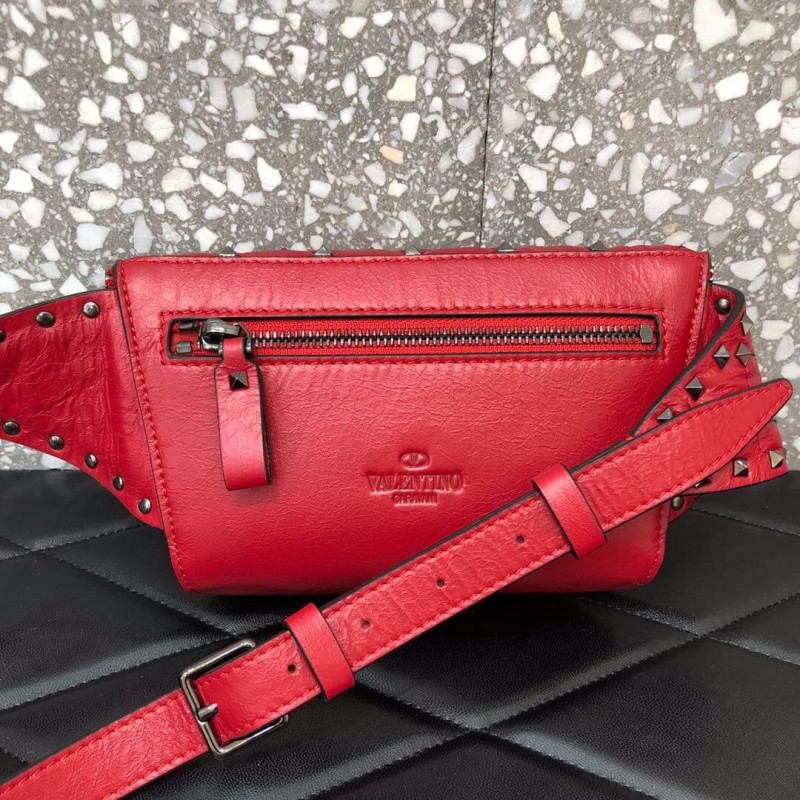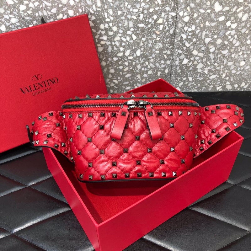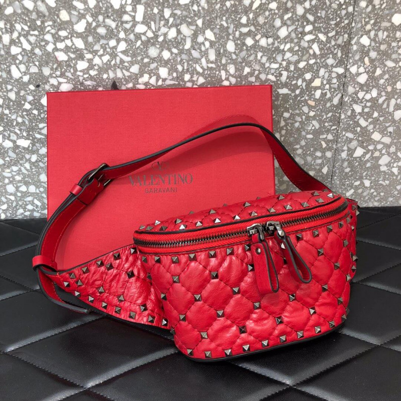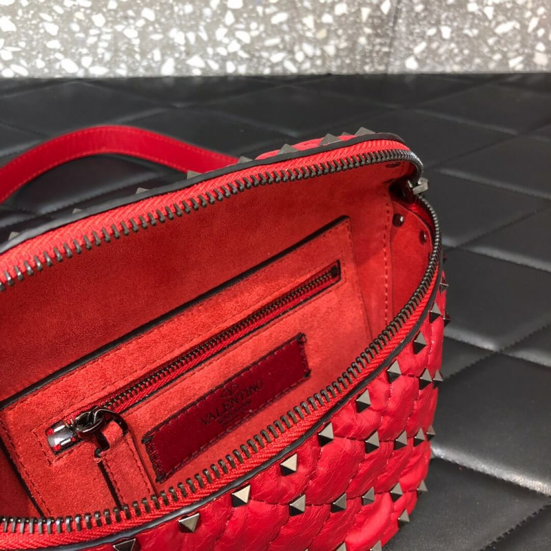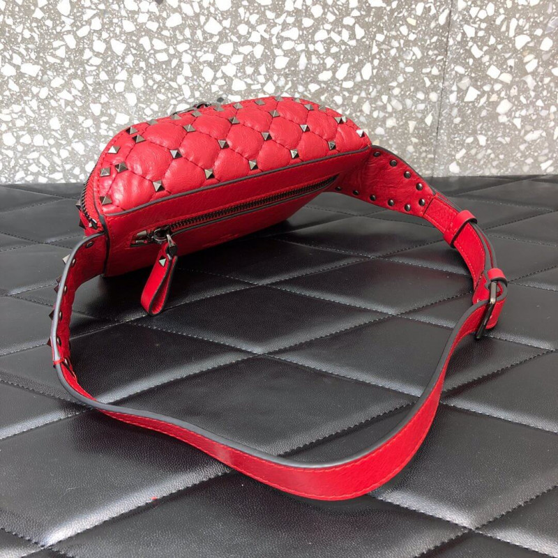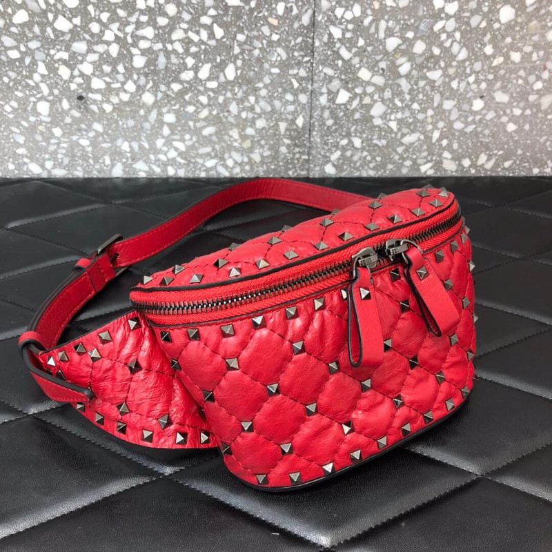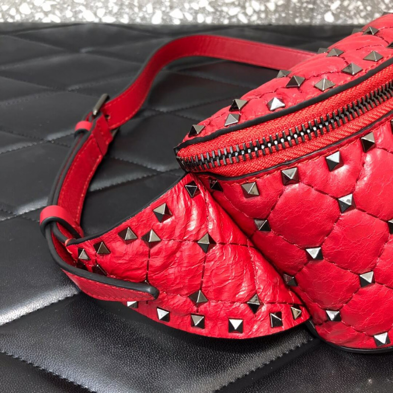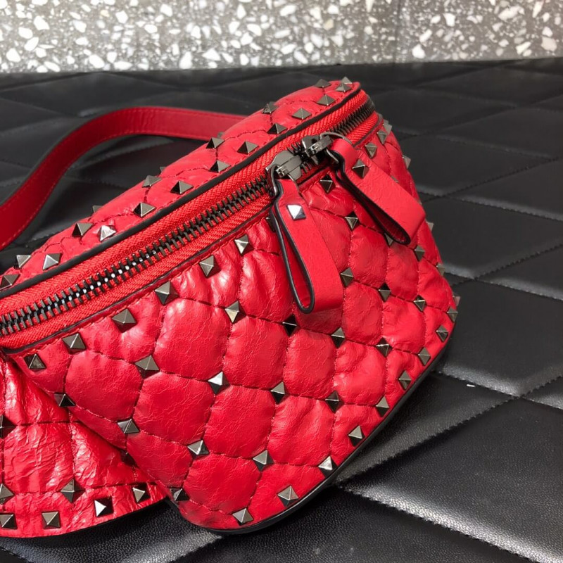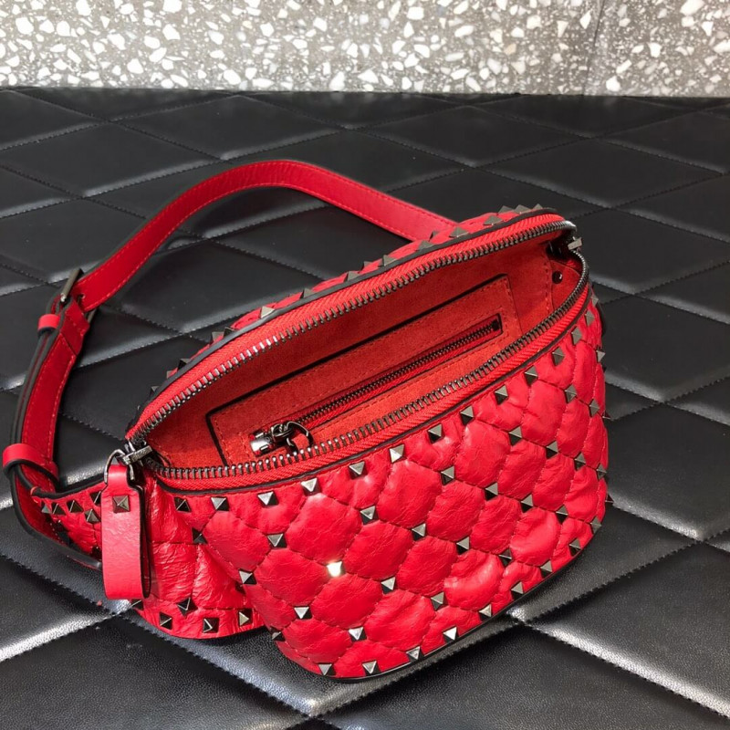 Valentino Garavani Rockstud Spike belt bag in supple nappa lambskin. Quilted construction embellished with small studs.