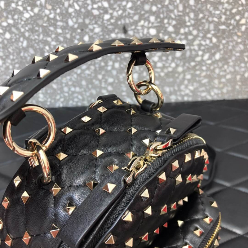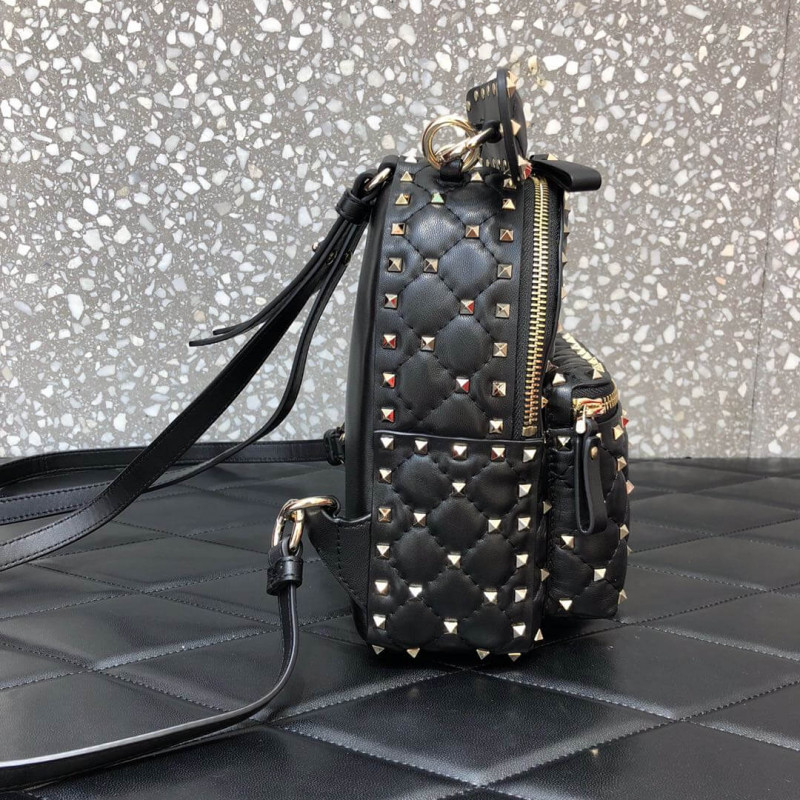 Valentino Garavani Rockstud Spike.It mini backpack in supple lambskin leather with VLTN print. Quilted construction embellished with small studs. The adjustable and removable shoulder straps mean the backpack can be worn on the shoulder or across the body.