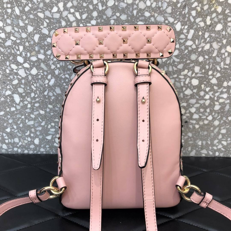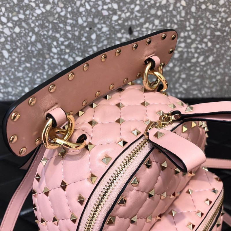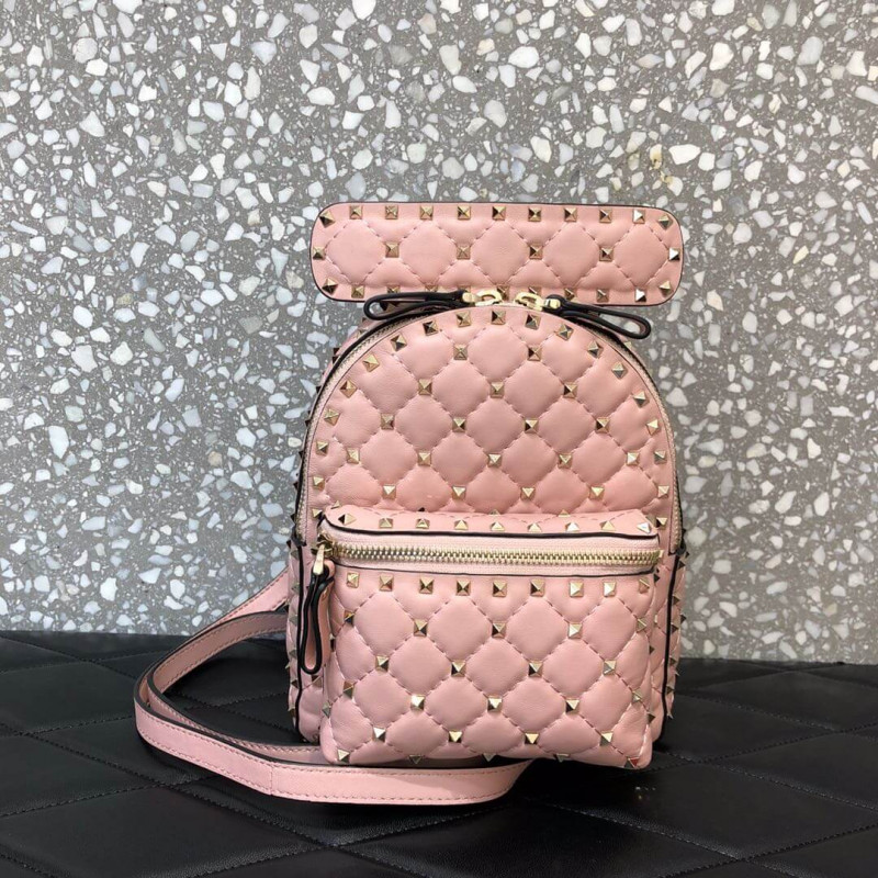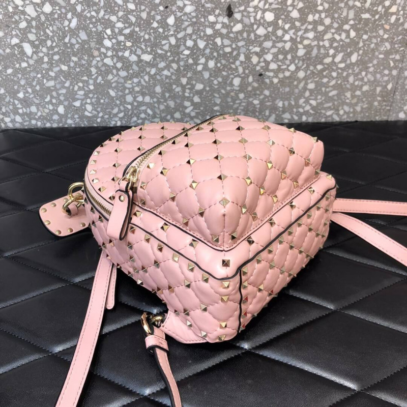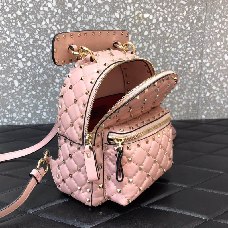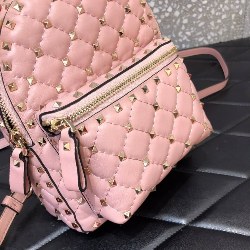 Valentino Garavani Rockstud Spike.It mini backpack in supple lambskin leather with VLTN print. Quilted construction embellished with small studs. The adjustable and removable shoulder straps mean the backpack can be worn on the shoulder or across the body.