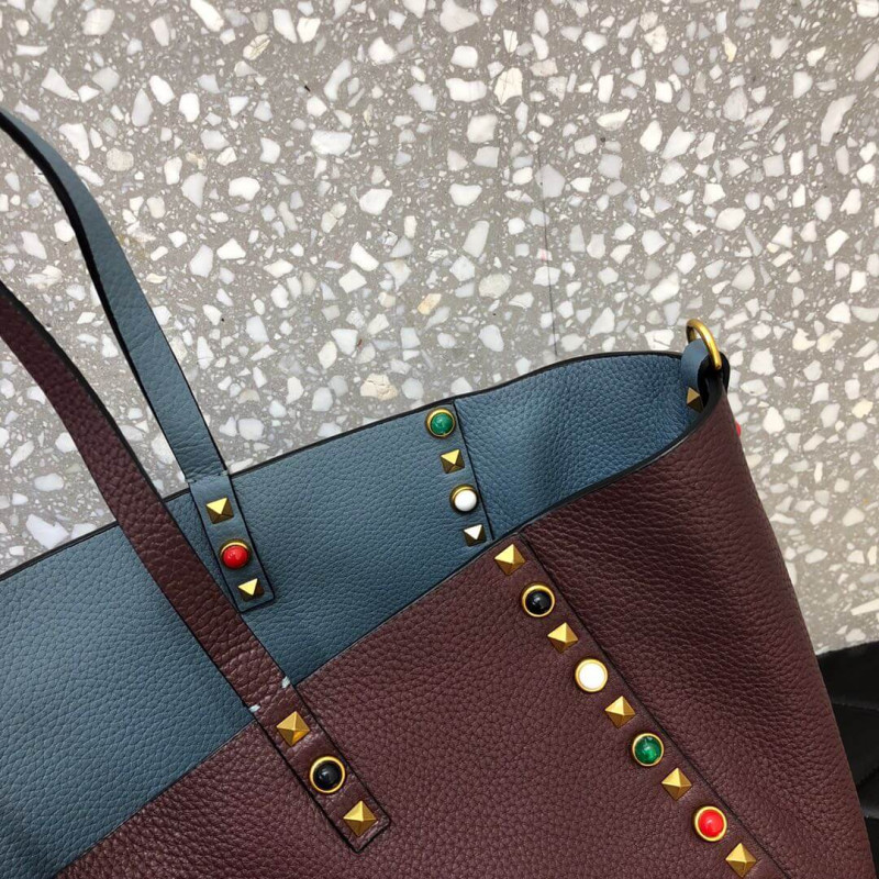 Valentino Garavani Medium Double Rockstud Reversible Tote Bag 0067G Blue/Burgundy